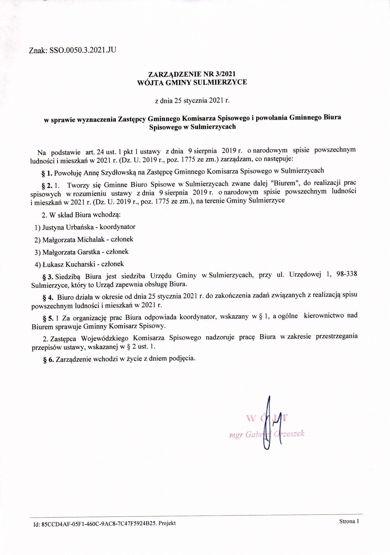 2021-01-25 przez Wójt Gminy Sulmierzyce - Gabriel Orzeszek