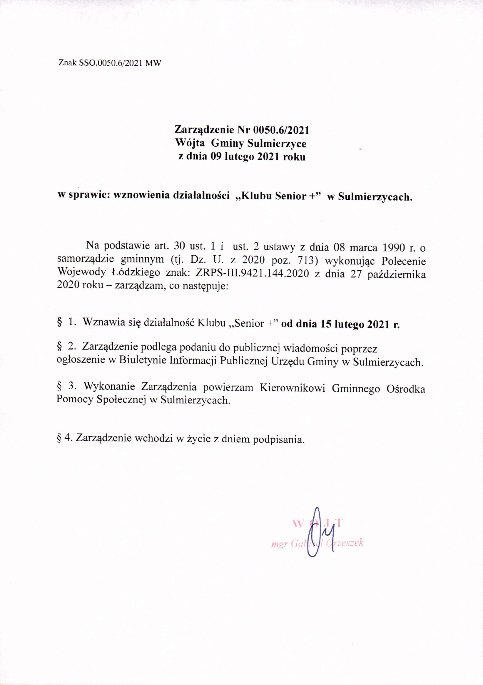 2021-02-09 przez Wójt Gminy Sulmierzyce - Gabriel Orzeszek