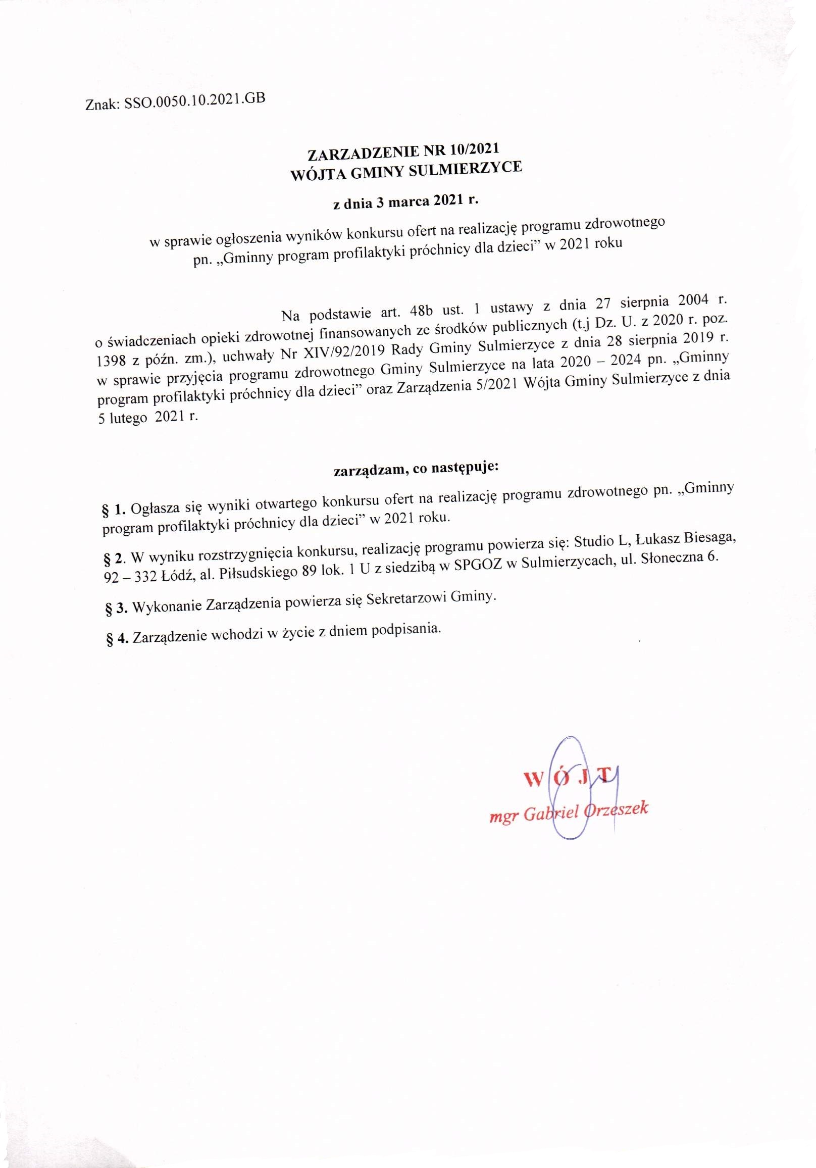 2021-03-03 przez Wójt Gminy Sulmierzyce - Gabriel Orzeszek