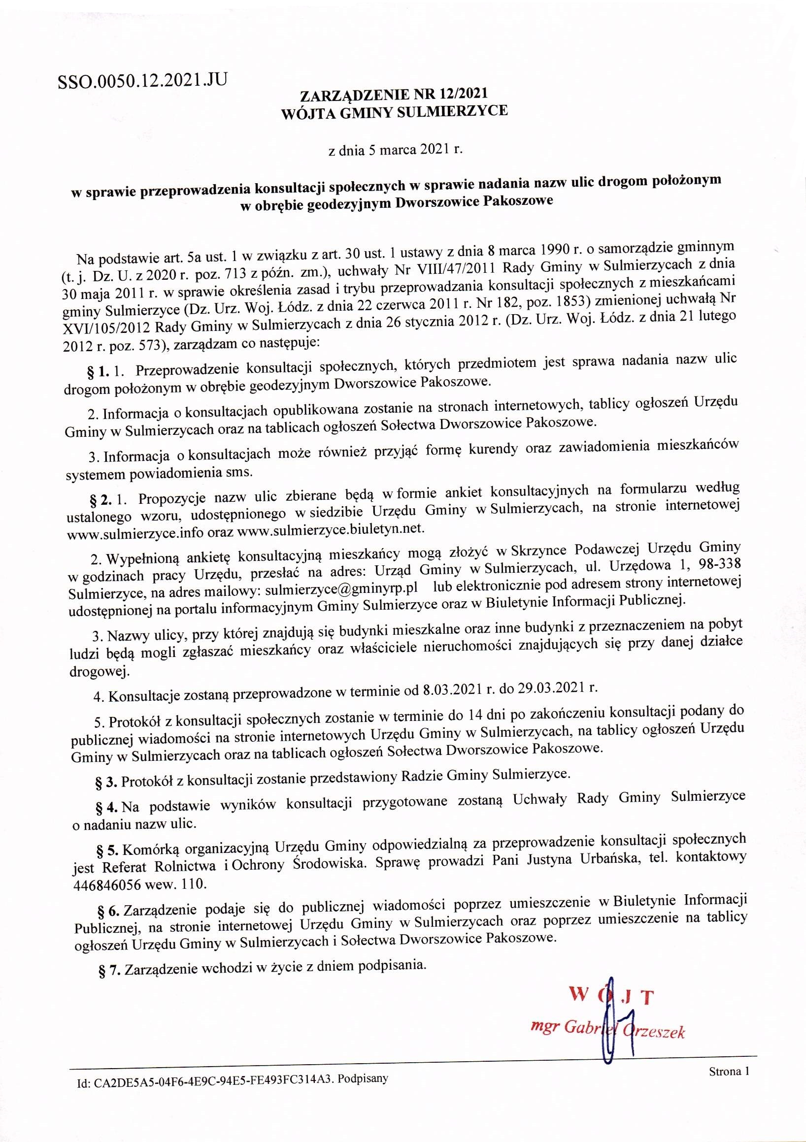2021-03-05 przez Wójt Gminy Sulmierzyce - Gabriel Orzeszek