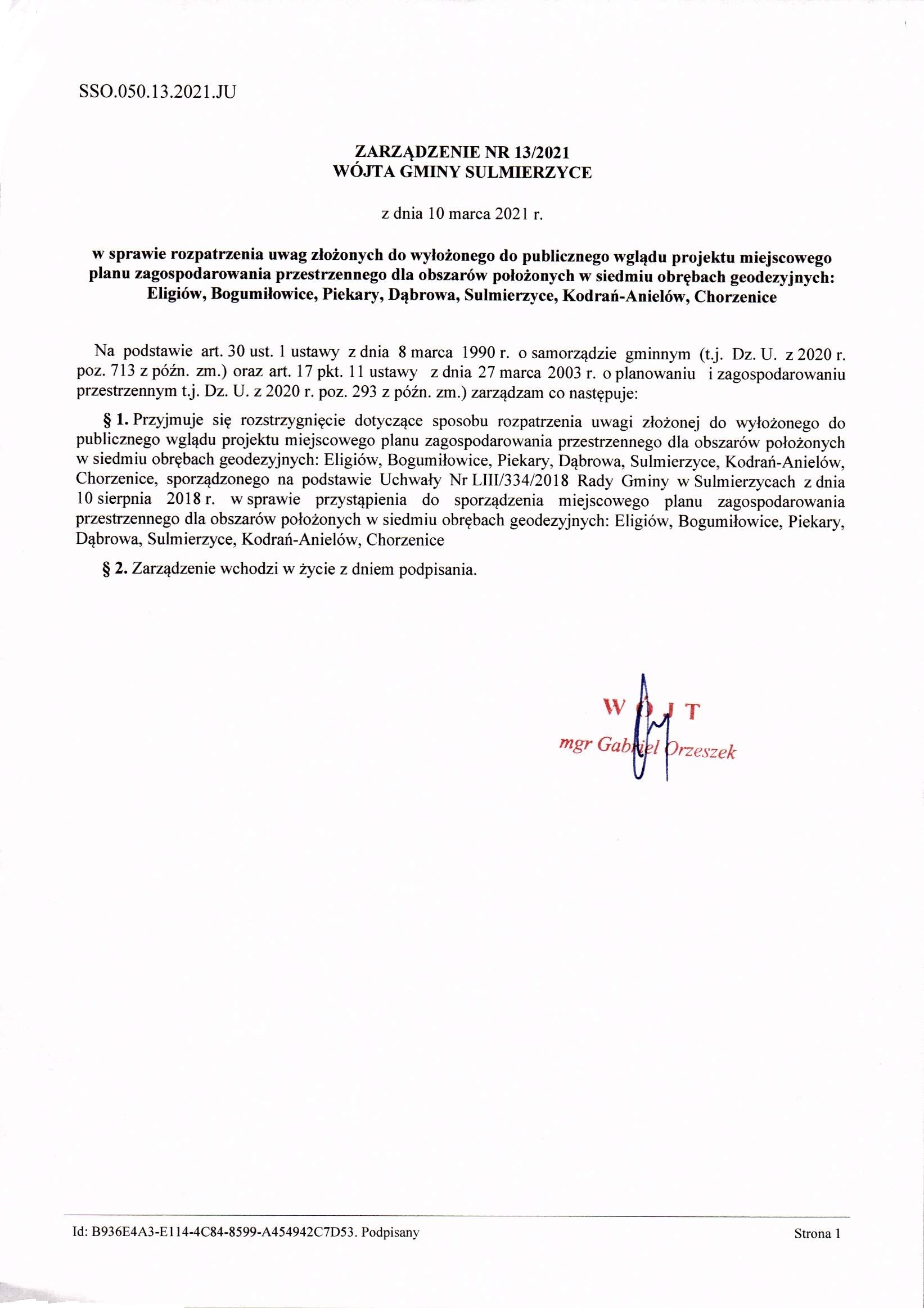 2021-03-10 przez Wójt Gminy Sulmierzyce - Gabriel Orzeszek