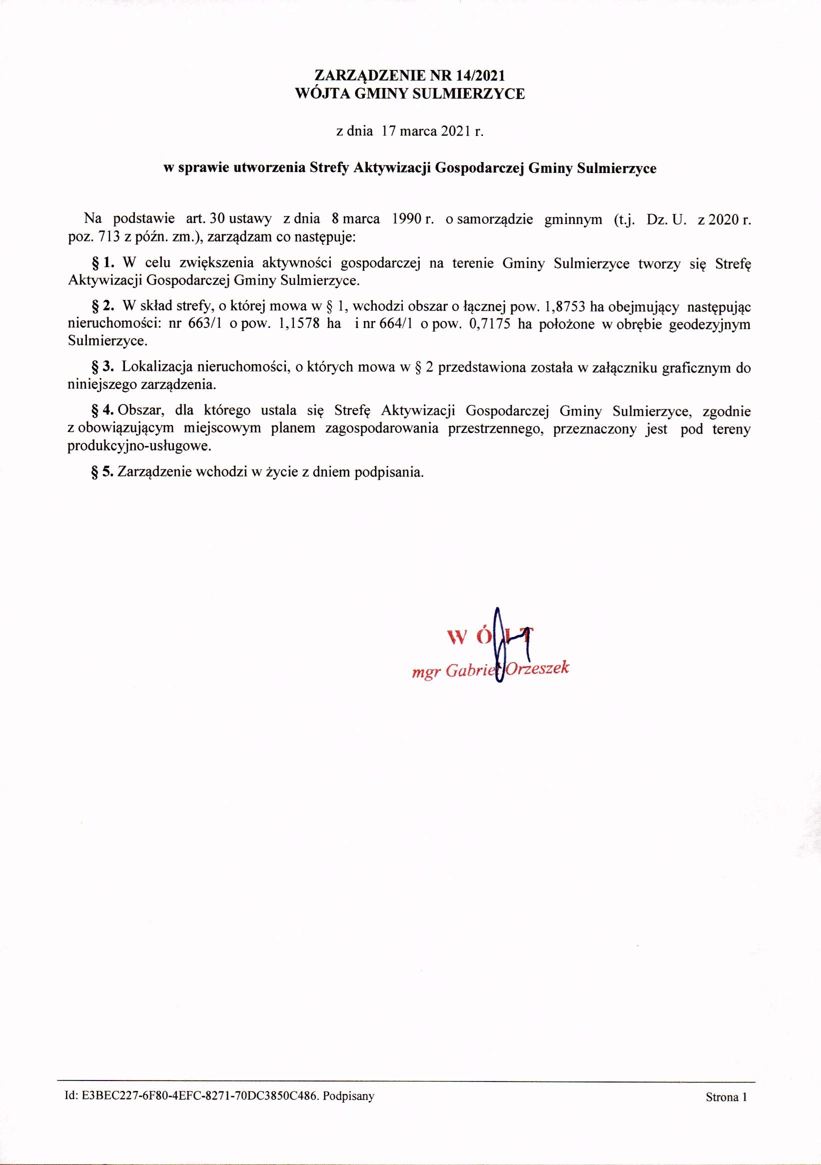 2021-03-17 przez Wójt Gminy Sulmierzyce - Gabriel Orzeszek