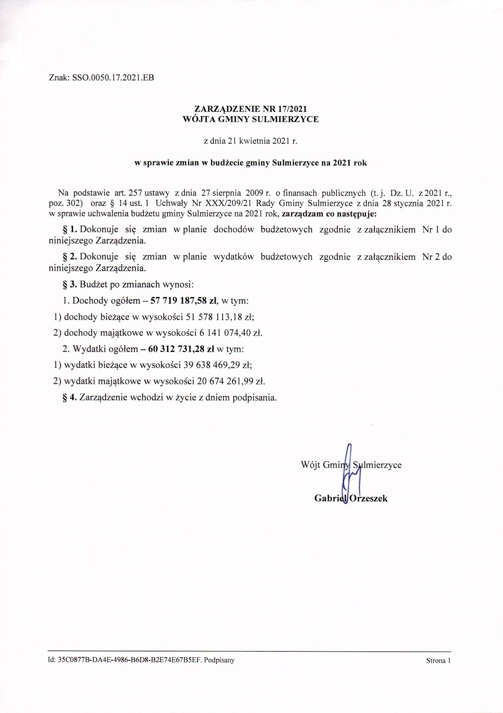 2021-04-12 przez Wójt Gminy Sulmierzyce - Gabriel Orzeszek