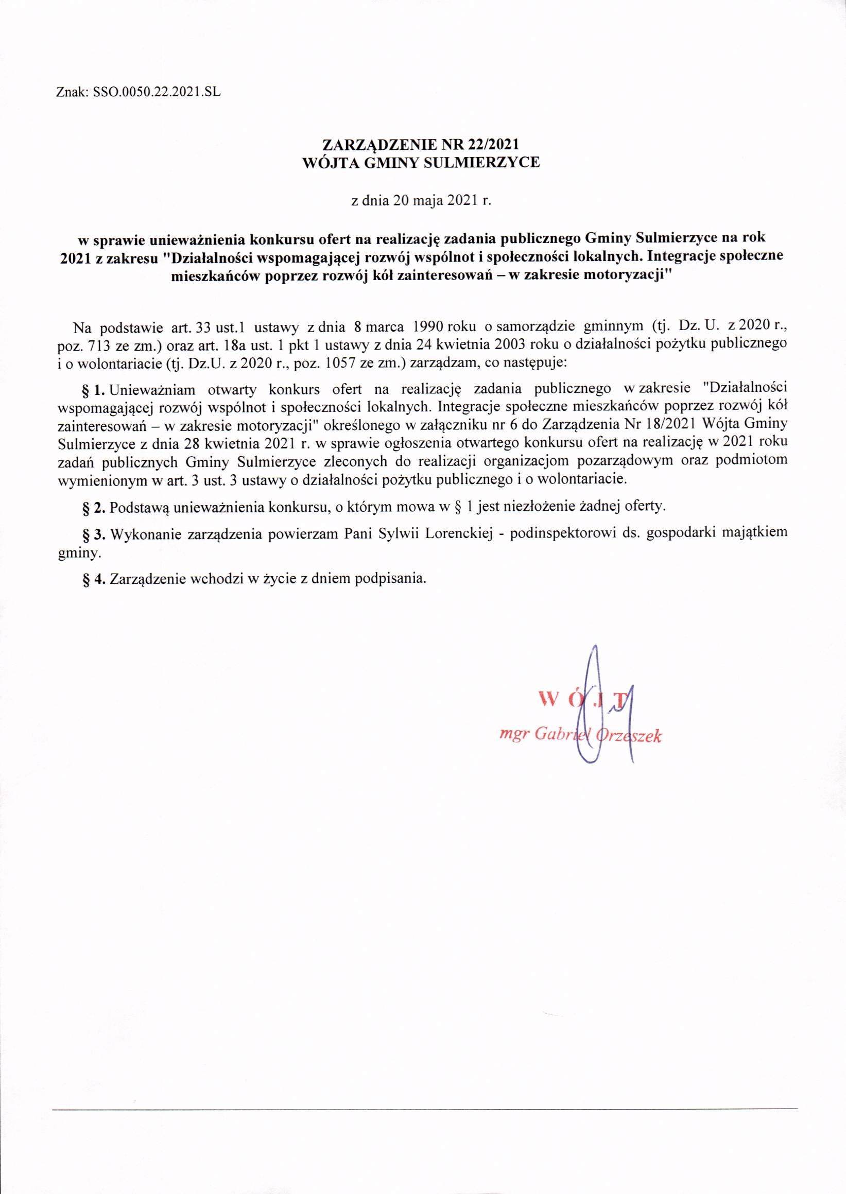 2021-05-20 przez Wójt Gminy Sulmierzyce - Gabriel Orzeszek