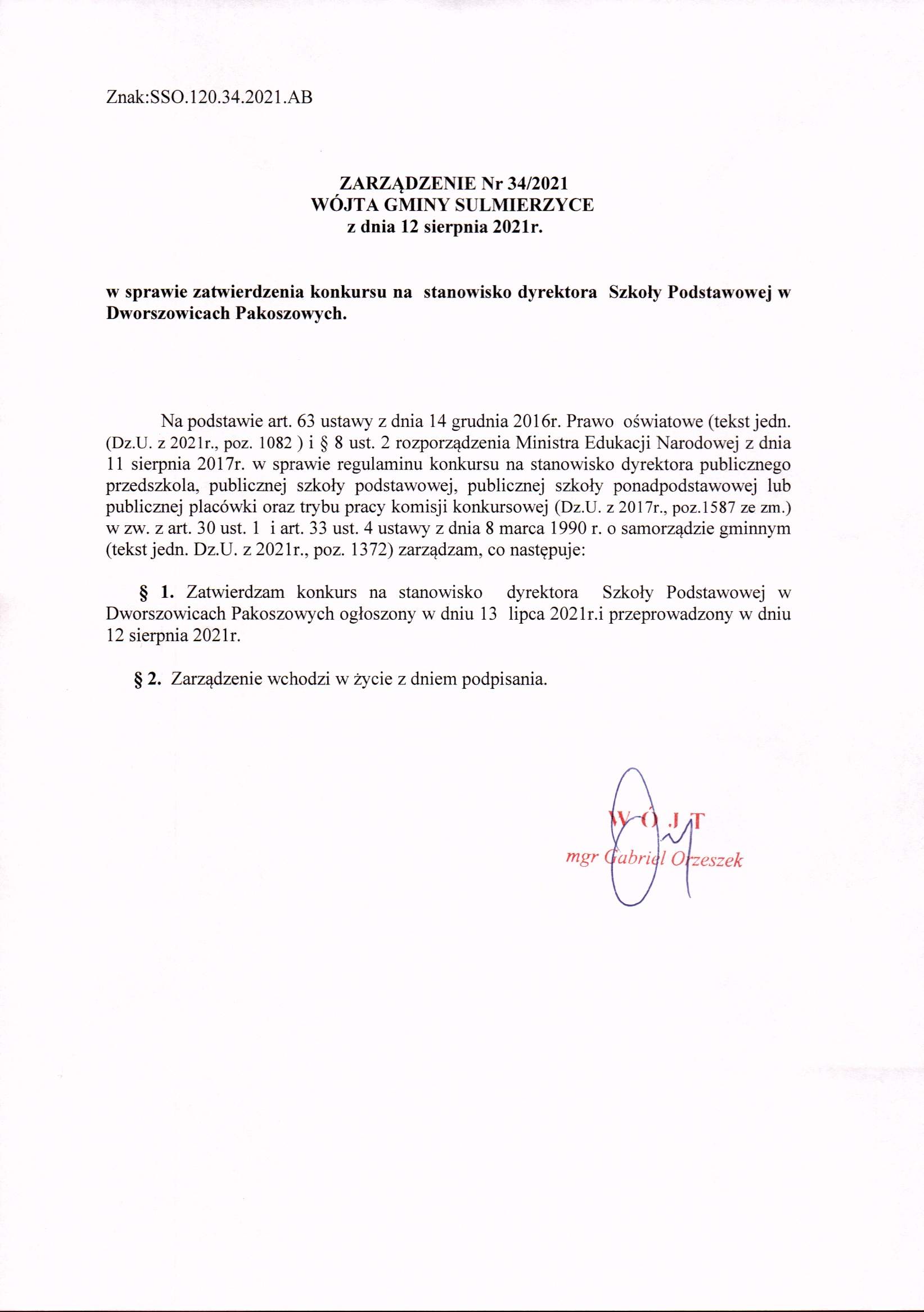 2021-08-16 przez Wójt Gminy Sulmierzyce - Gabriel Orzeszek