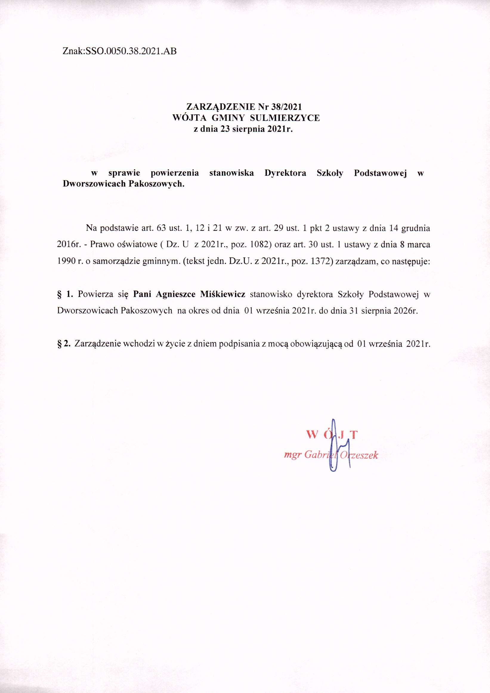 2021-08-23 przez Wójt Gminy Sulmierzyce - Gabriel Orzeszek