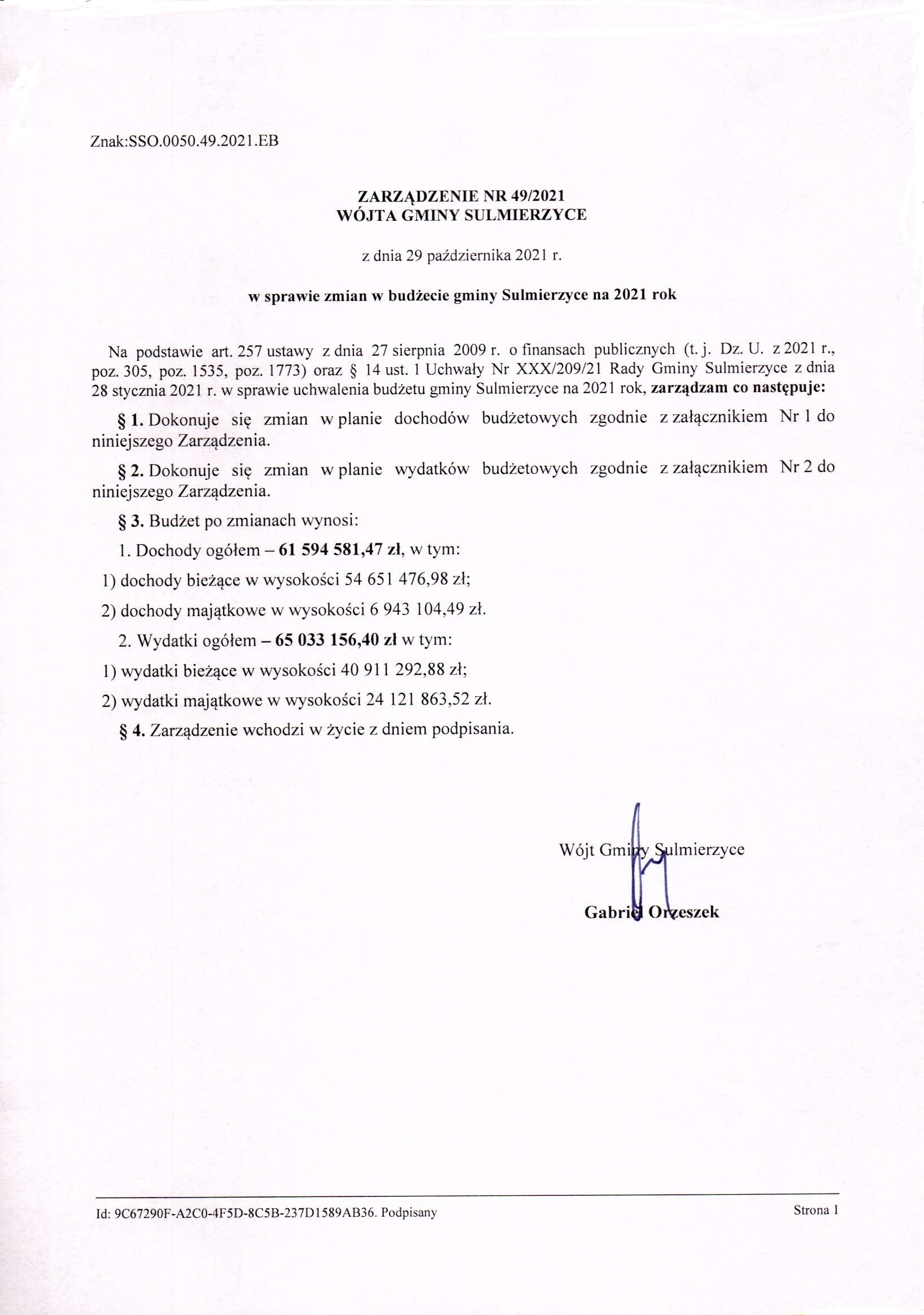2021-10-29 przez Wójt Gminy Sulmierzyce - Gabriel Orzeszek