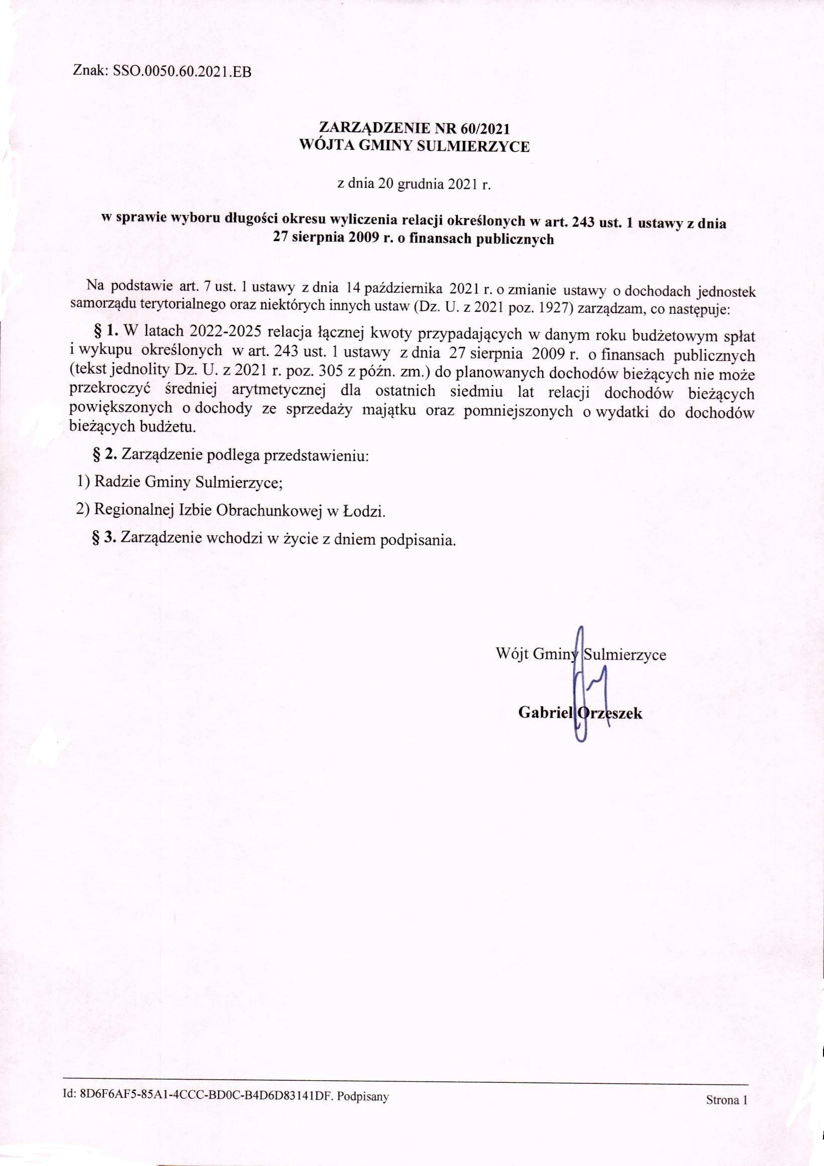 2021-12-20 przez Skarbnik Gminy Ewa Bęczkowska, zatwierdził: Wójt Gminy Gabriel Orzeszek