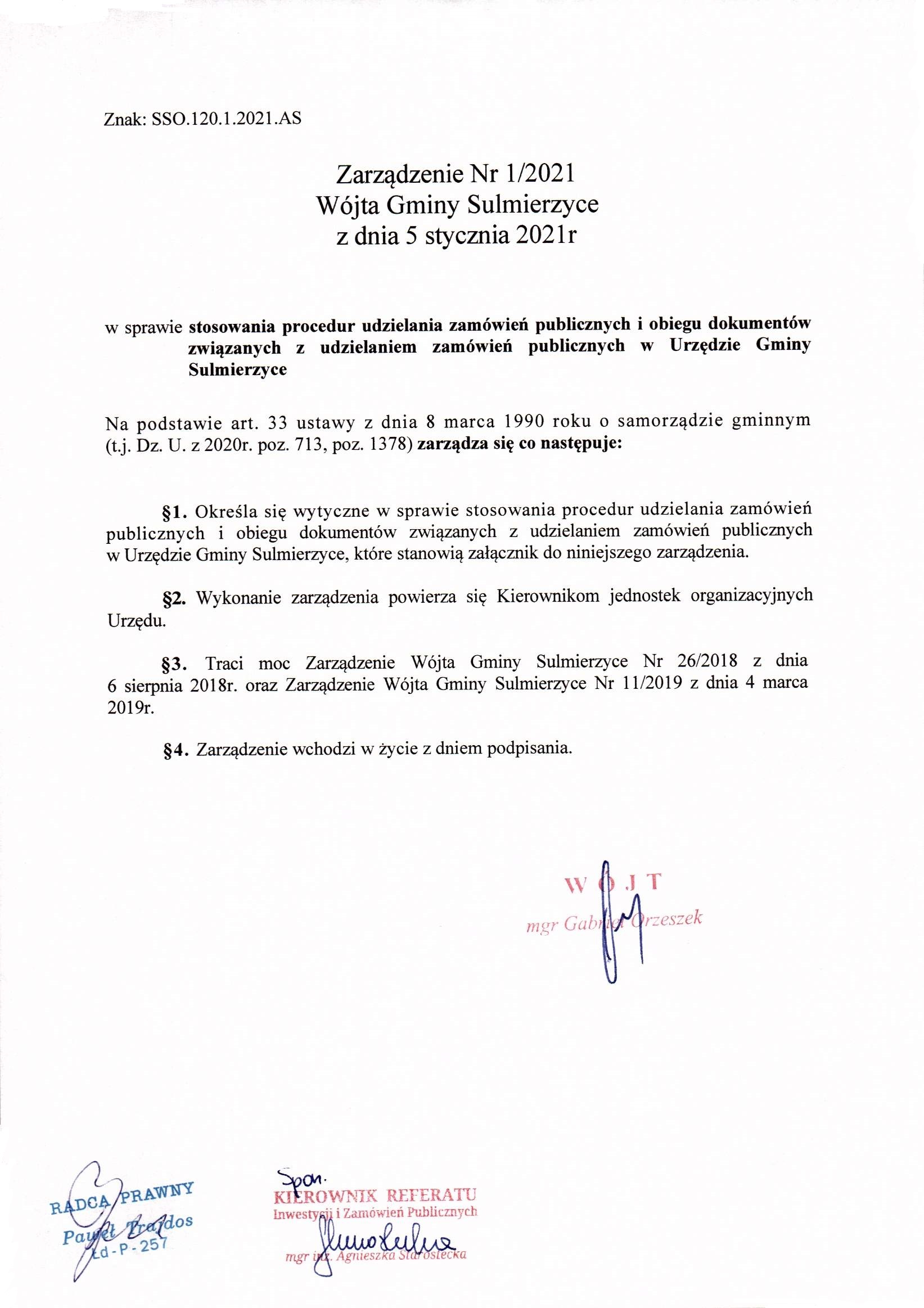 2021-01-05 przez Wójt Gminy Sulmierzyce - Gabriel Orzeszek