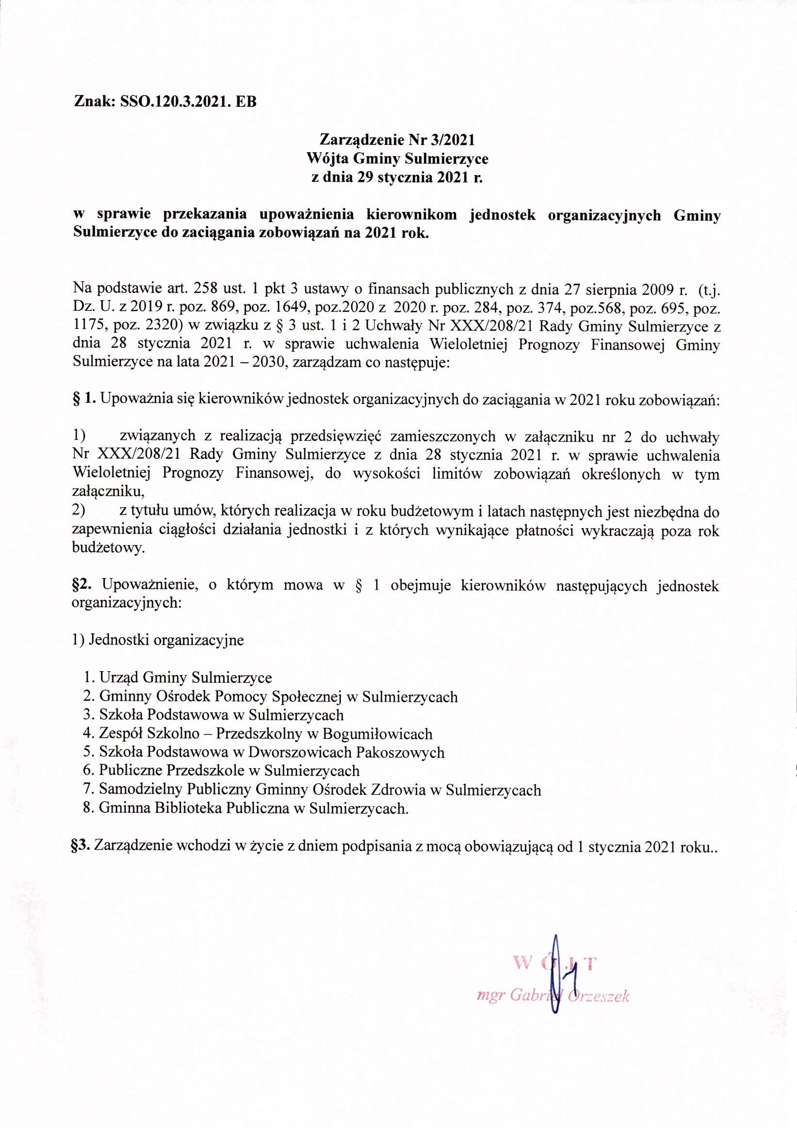 2021-01-29 przez Wójt Gminy Sulmierzyce - Gabriel Orzeszek