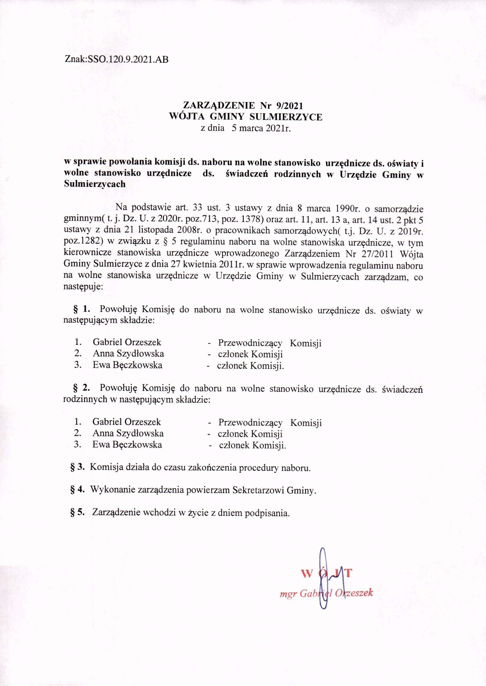 2021-03-05 przez Wójt Gminy Sulmierzyce - Gabriel Orzeszek