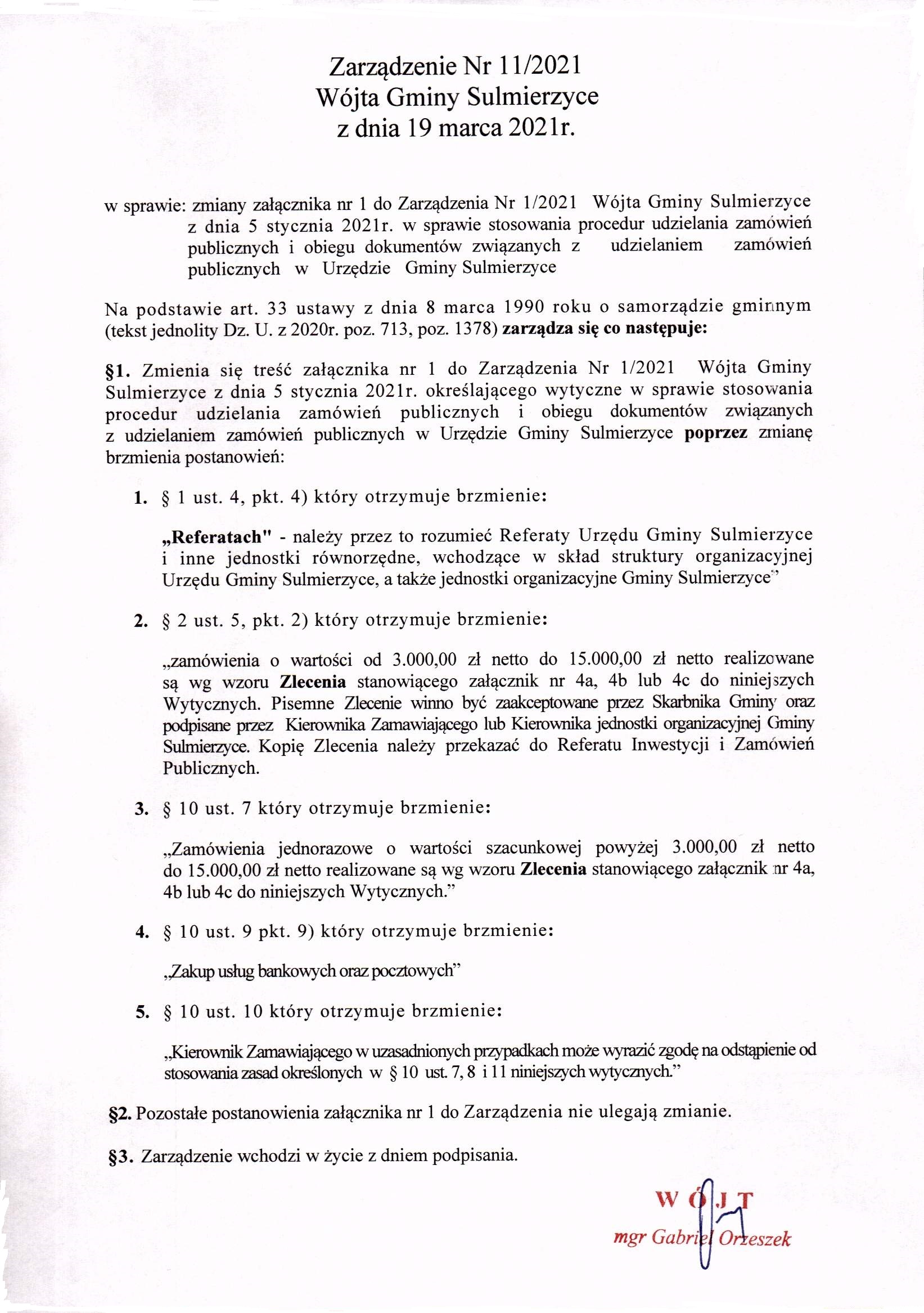 2021-03-19 przez Wójt Gminy Sulmierzyce - Gabriel Orzeszek