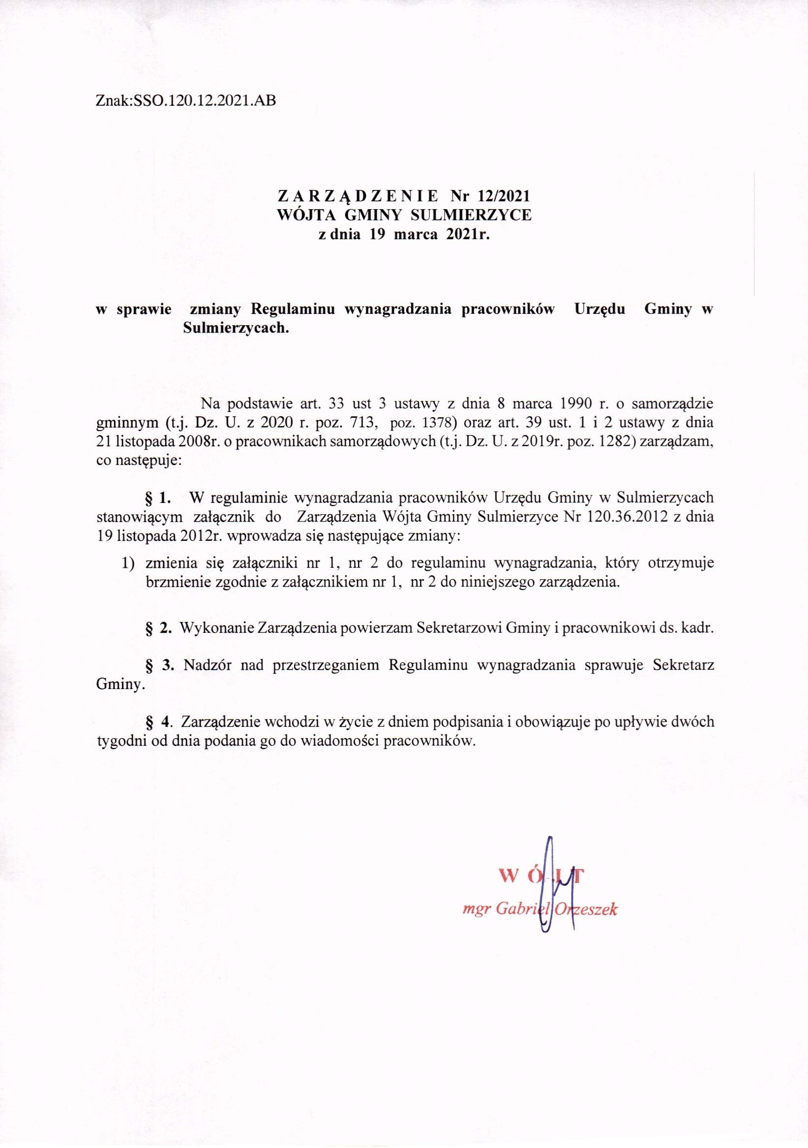 2021-03-19 przez Wójt Gminy Sulmierzyce - Gabriel Orzeszek