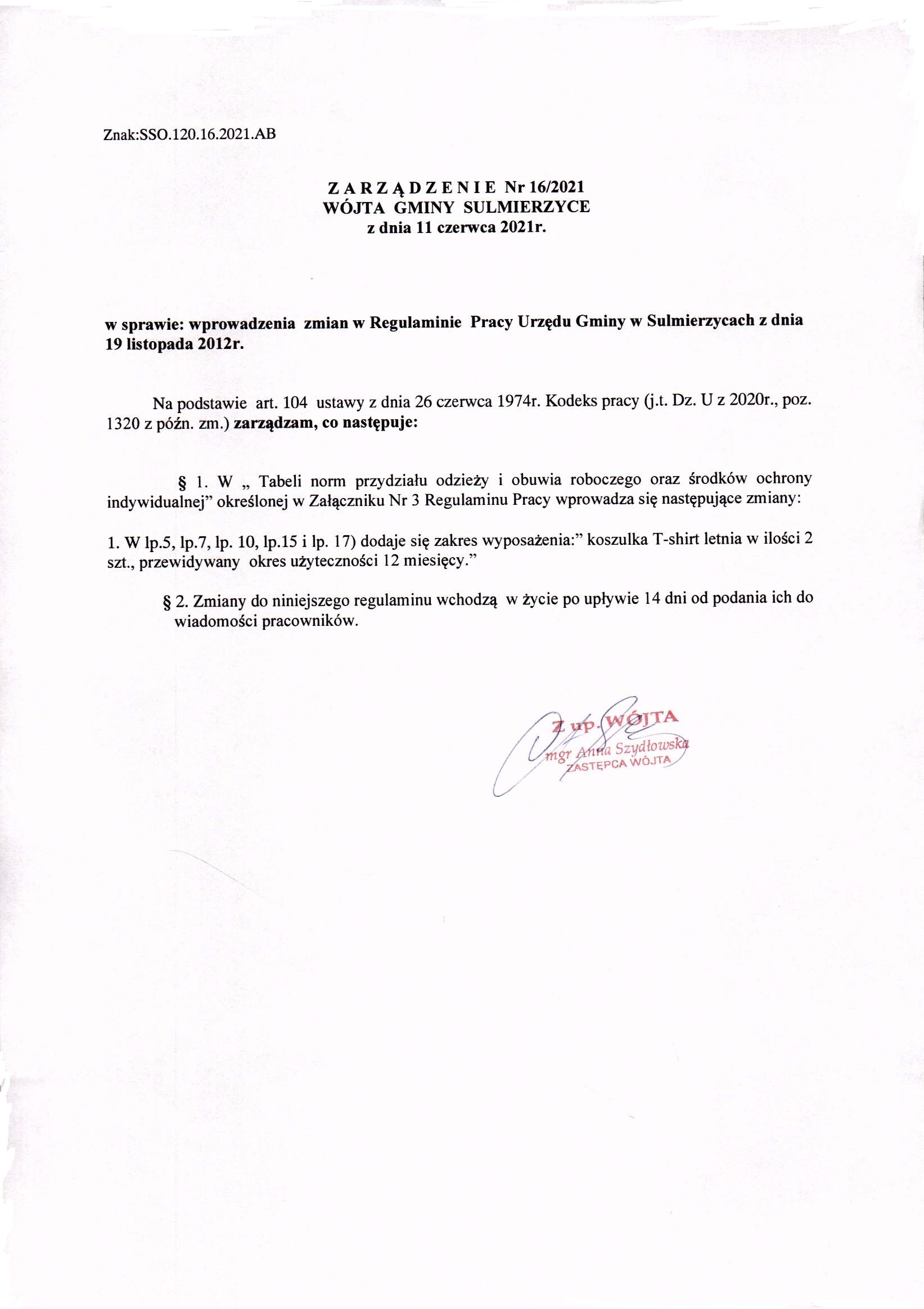 2021-06-11 przez Zastępca Wójta - Anna Szydłowska