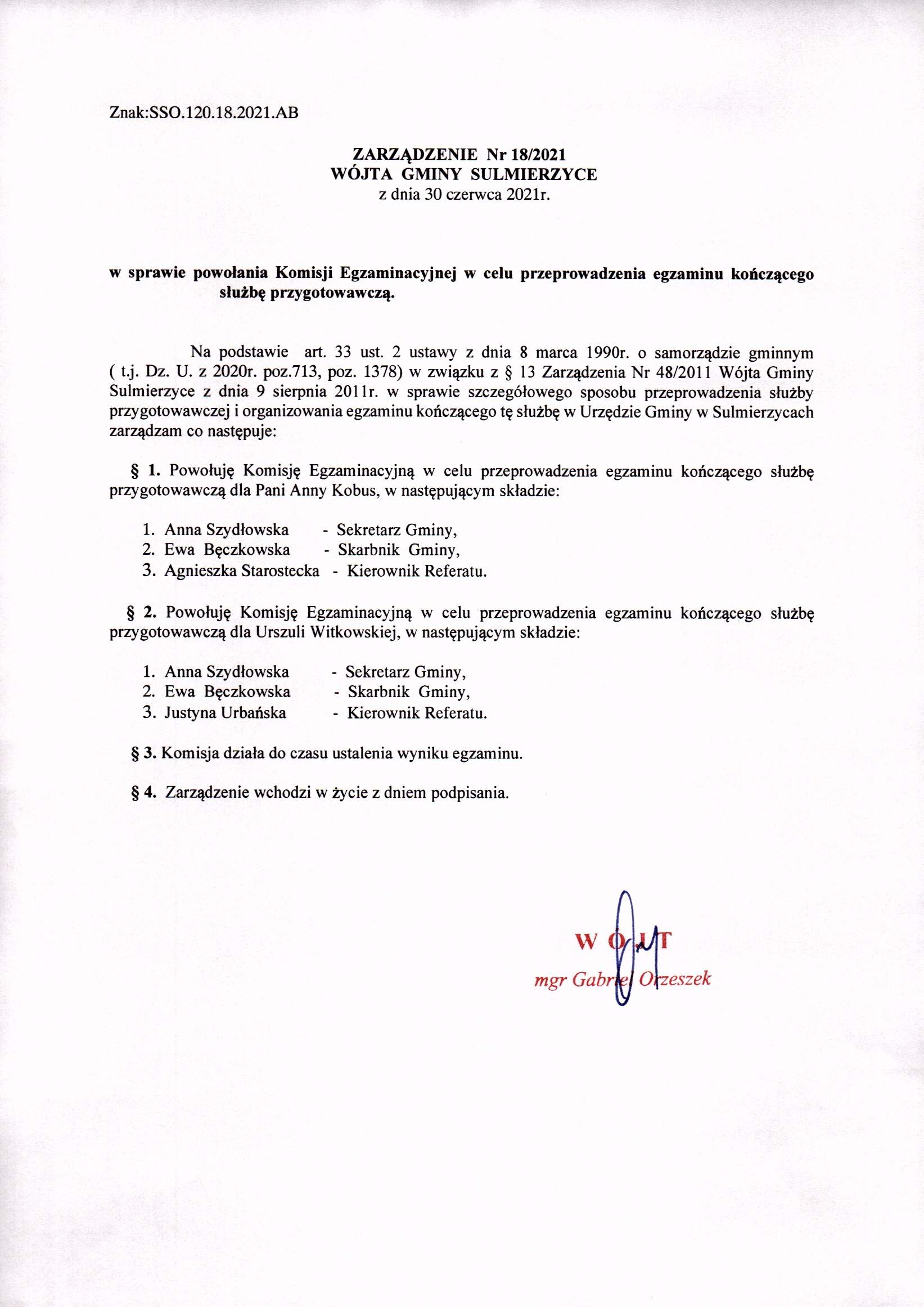 2021-06-30 przez Wójt Gminy Sulmierzyce - Gabriel Orzeszek