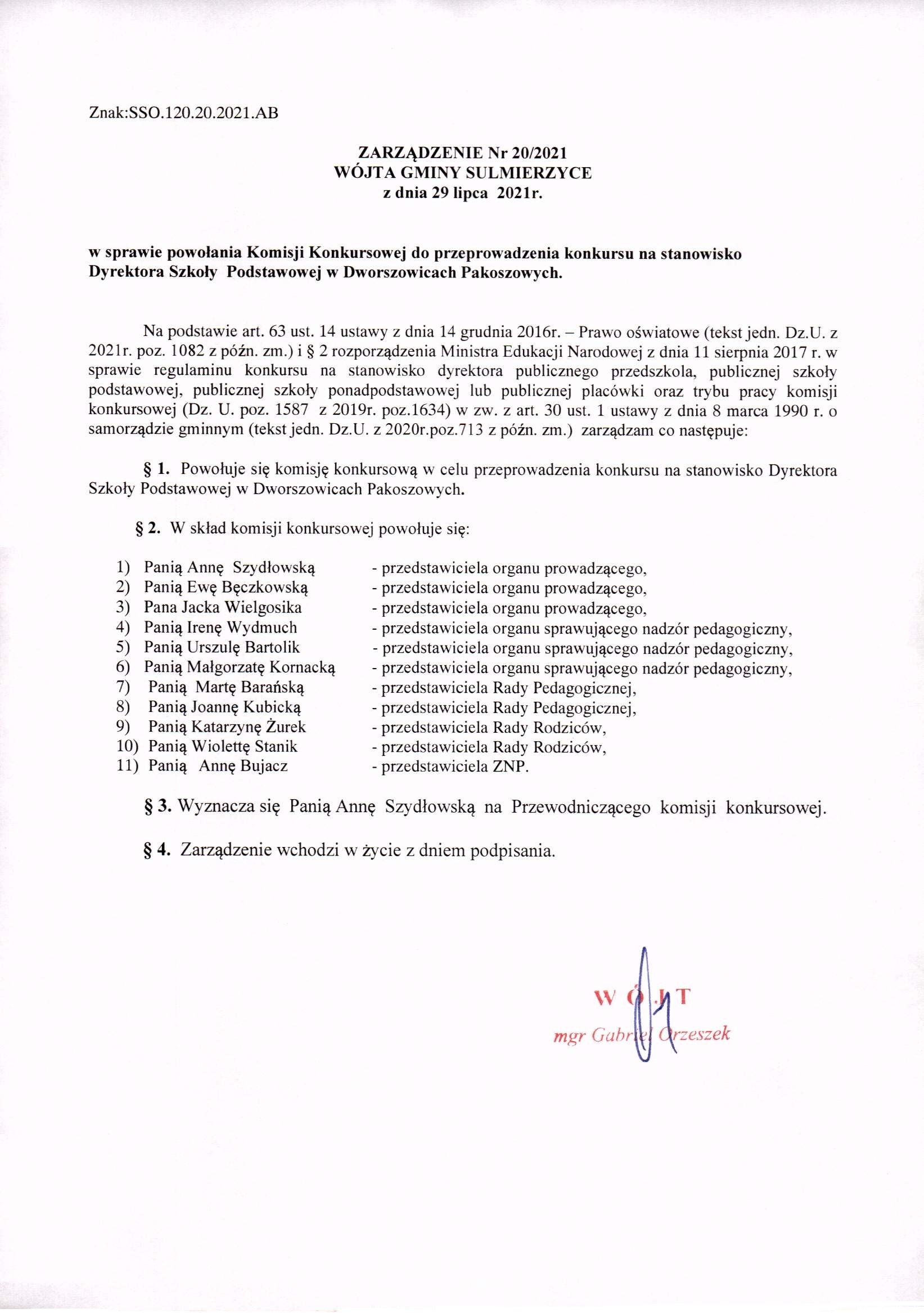 2021-07-29 przez Wójt Gminy Sulmierzyce - Gabriel Orzeszek