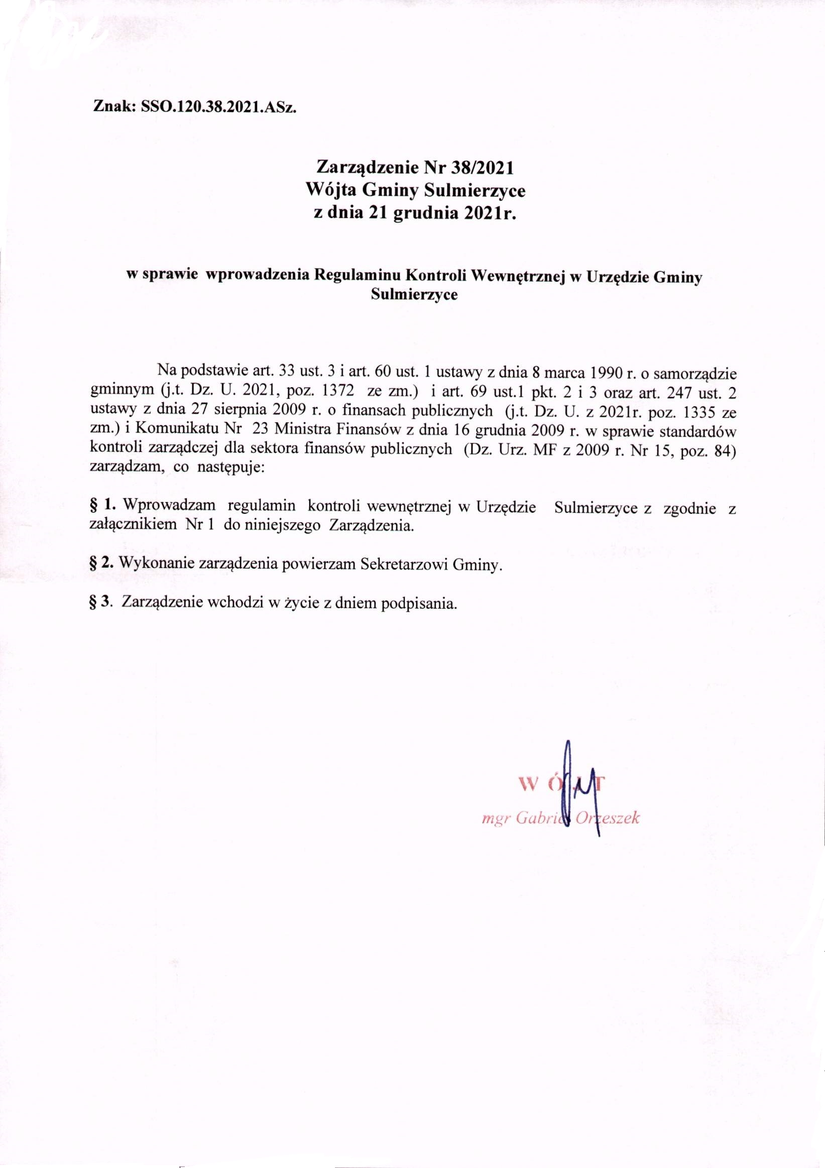 2021-12-21 przez Wójt Gminy Sulmierzyce - Gabriel Orzeszek