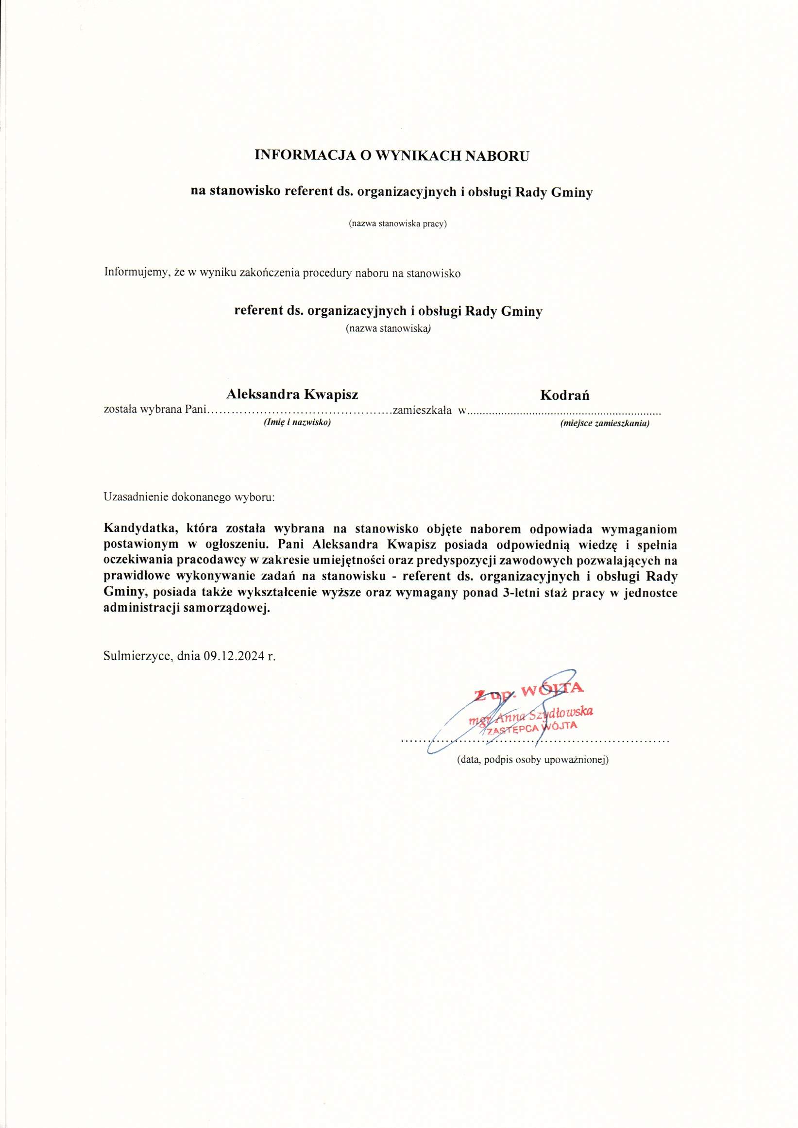 2024-12-11 przez Anna Bujacz, zatwierdził: Zastępca Wójta Gminy - Anna Szydłowska