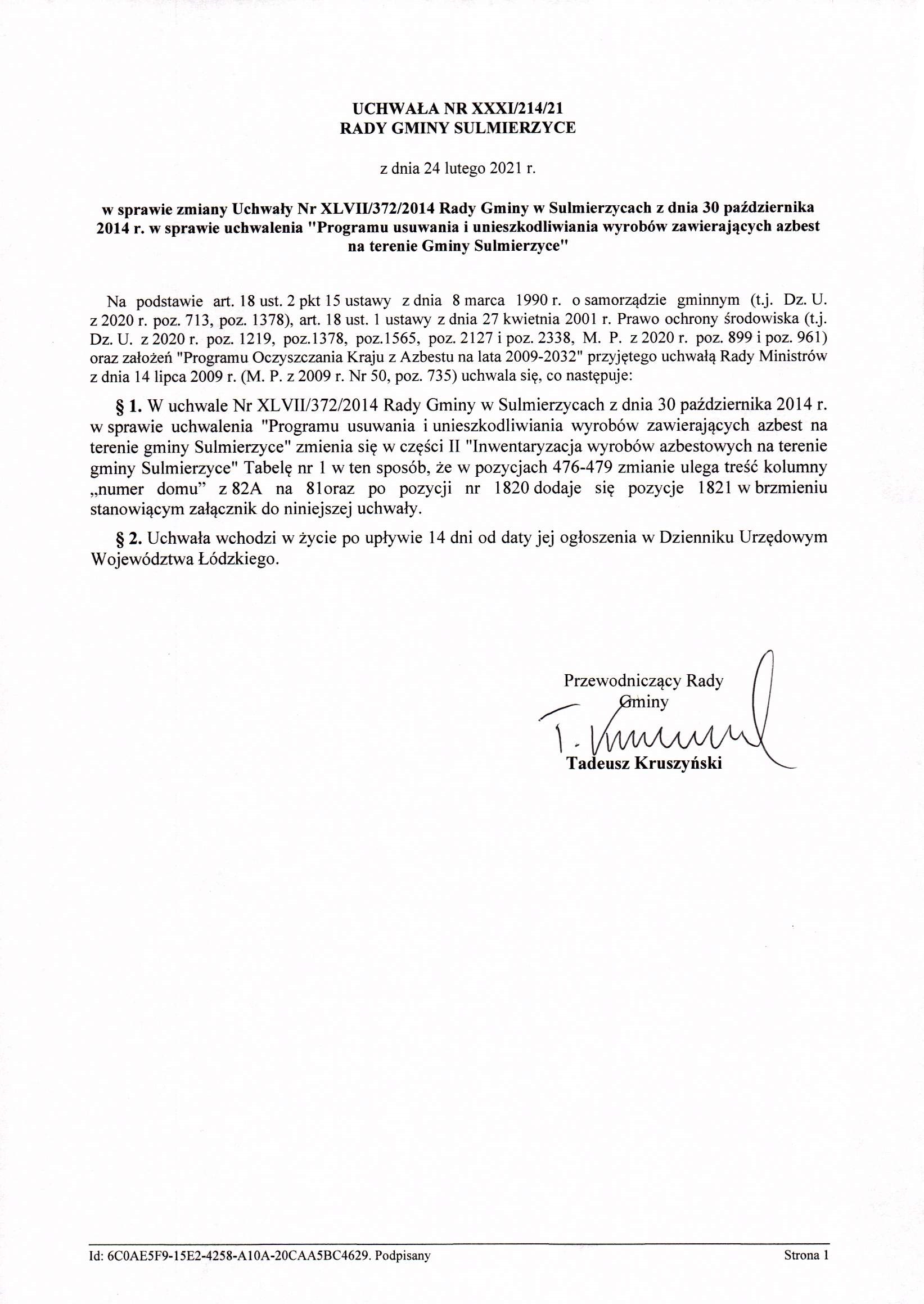 2021-02-24 przez Tadeusz Kruszyński - Przewodniczący Rady Gminy Sulmierzyce