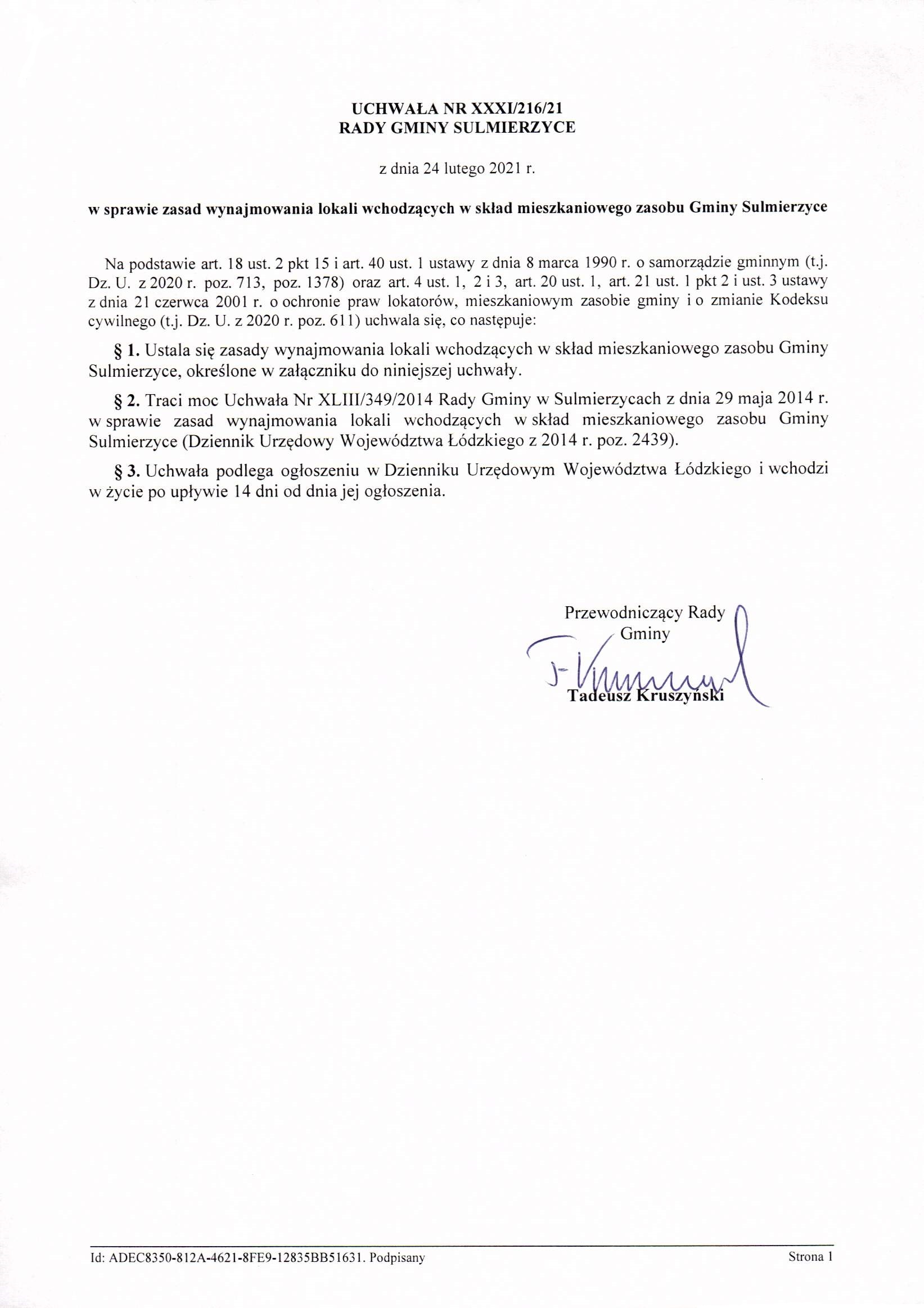 2021-02-24 przez Tadeusz Kruszyński - Przewodniczący Rady Gminy Sulmierzyce