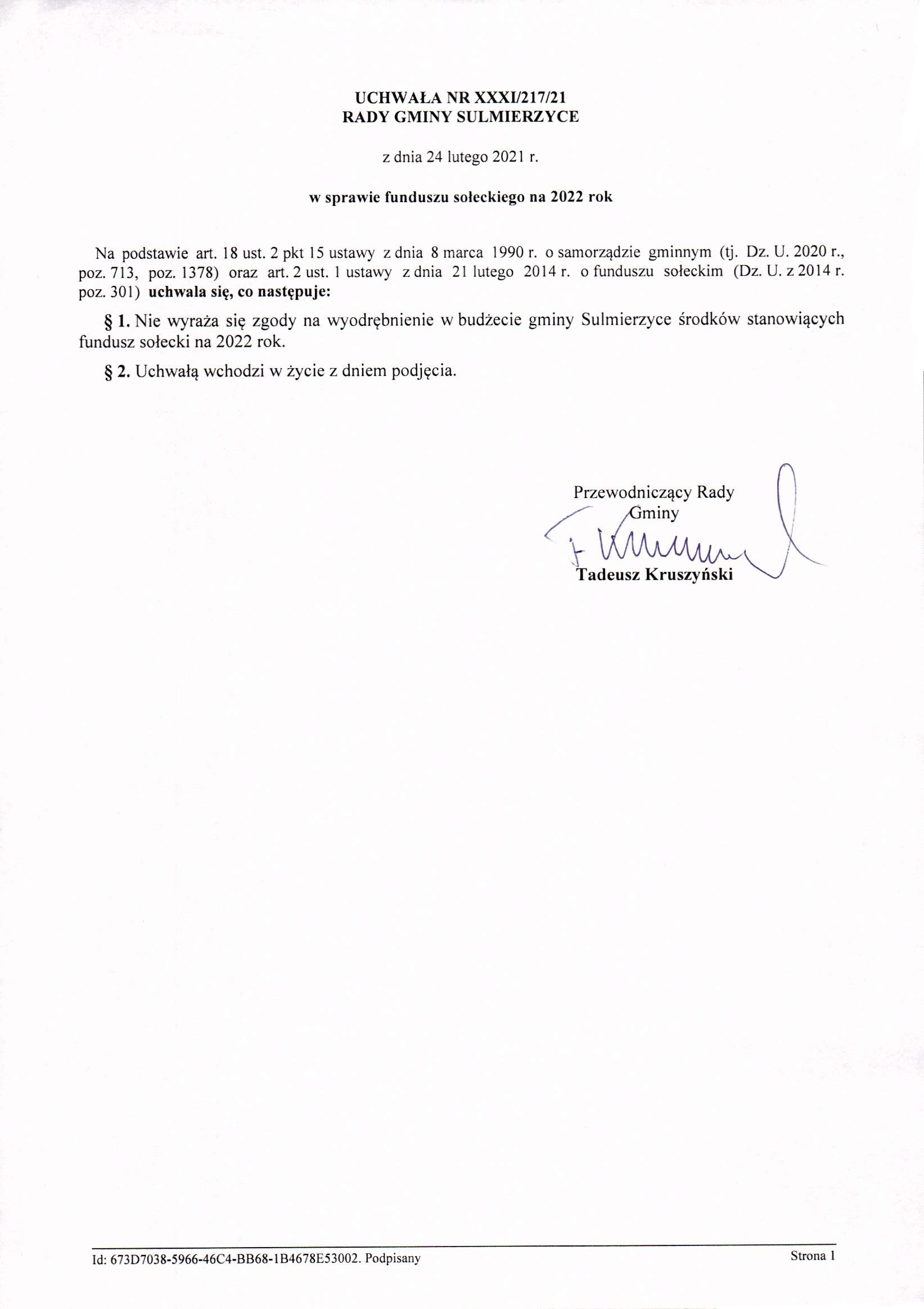 2021-02-24 przez Tadeusz Kruszyński - Przewodniczący Rady Gminy Sulmierzyce