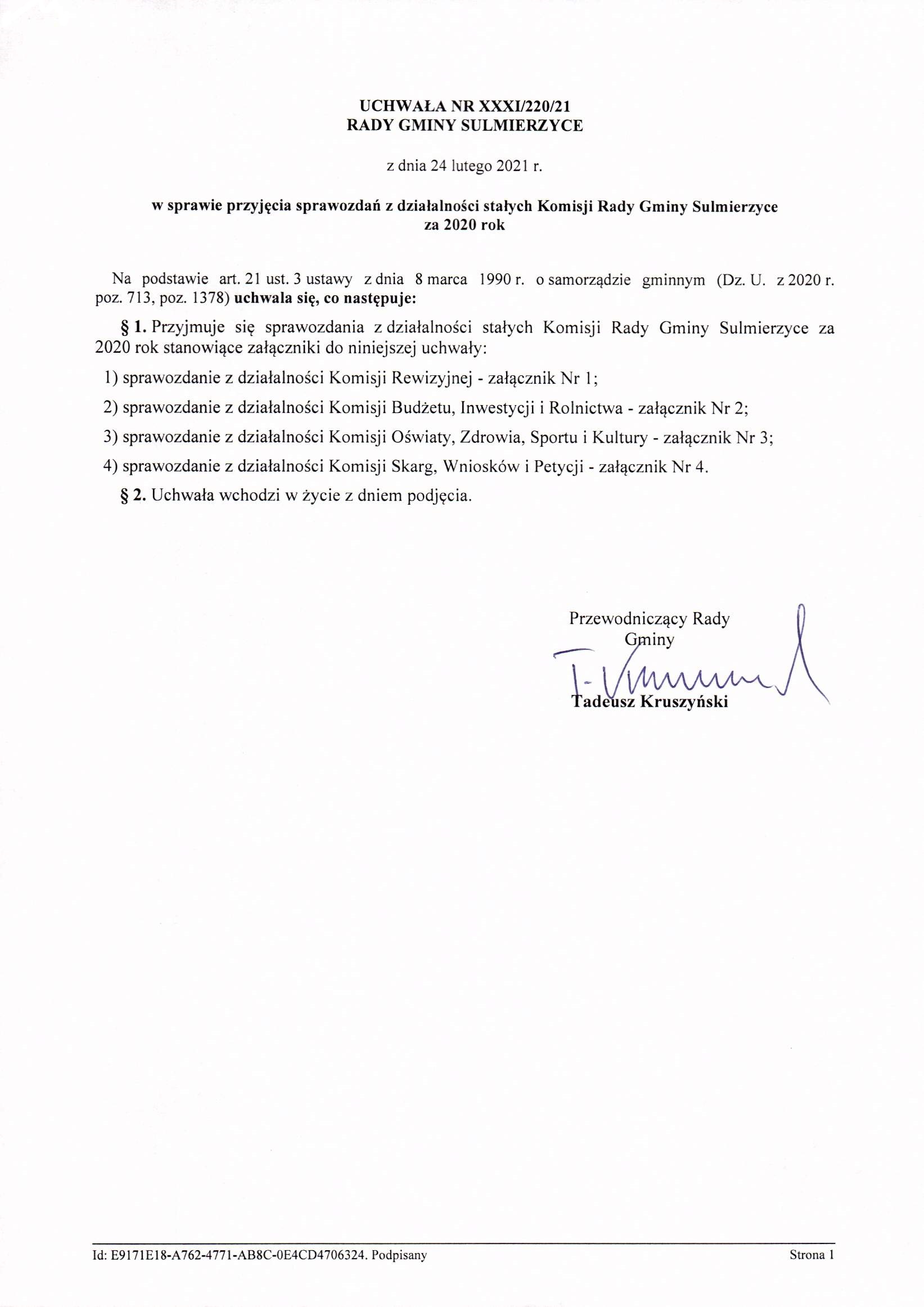 2021-02-24 przez Tadeusz Kruszyński - Przewodniczący Rady Gminy Sulmierzyce