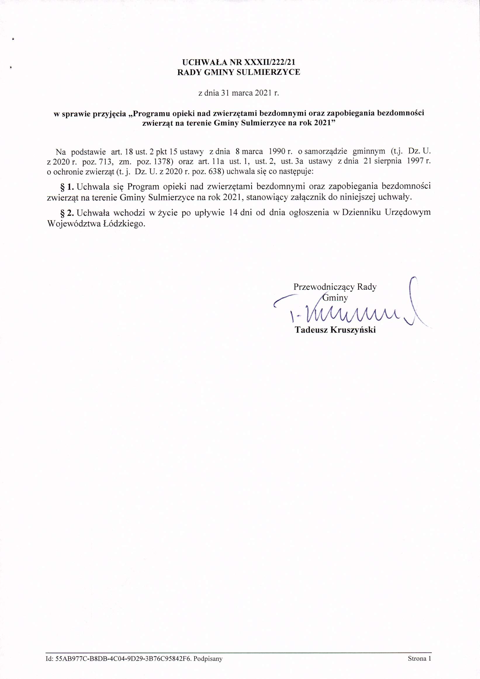 2021-03-31 przez Tadeusz Kruszyński - Przewodniczący Rady Gminy Sulmierzyce