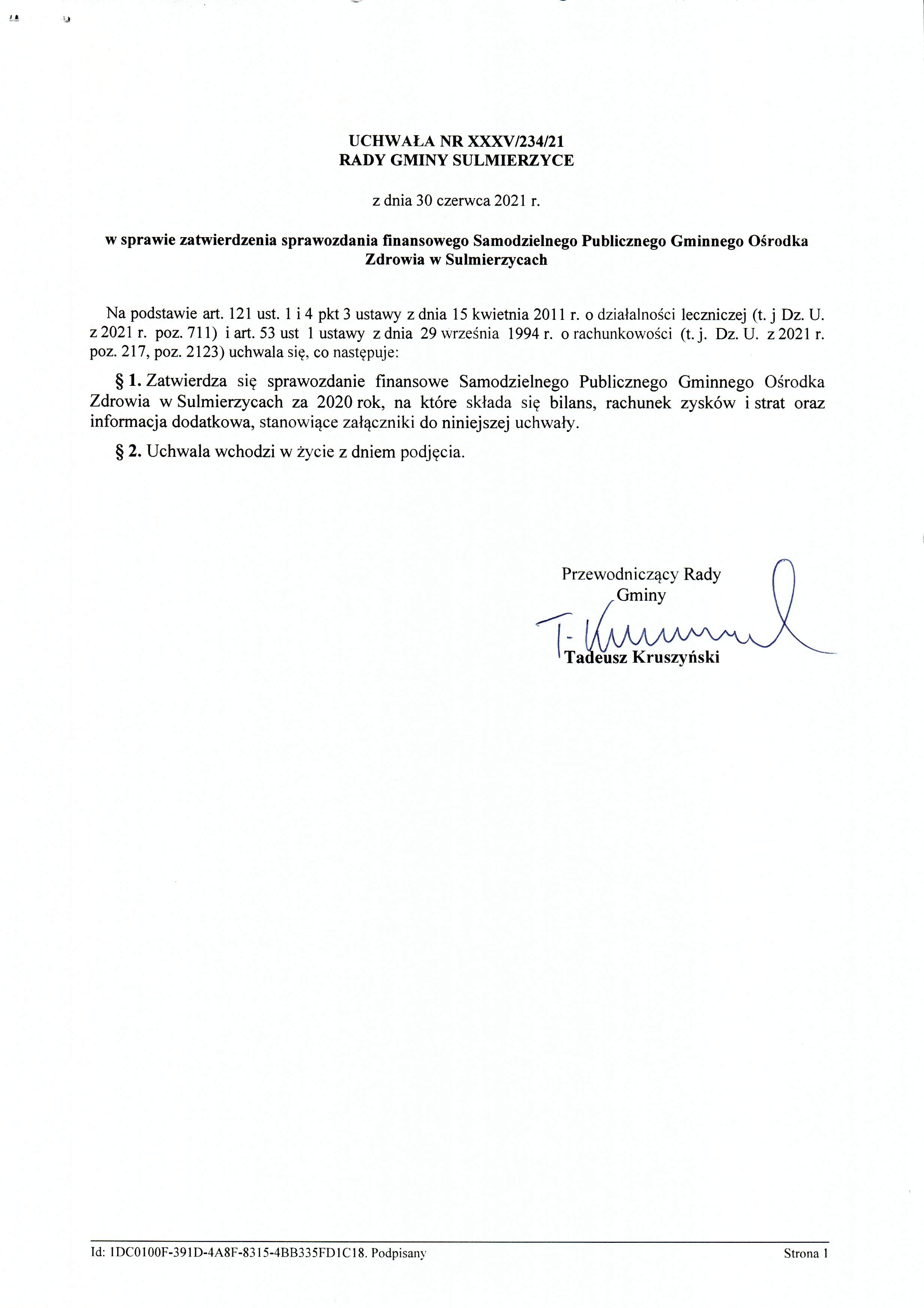2021-07-07 przez Tadeusz Kruszyński - Przewodniczący Rady Gminy Sulmierzyce