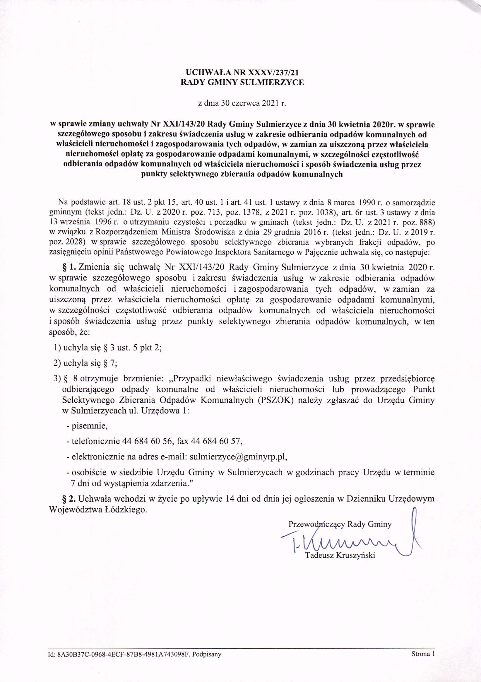 2021-06-30 przez Tadeusz Kruszyński - Przewodniczący Rady Gminy Sulmierzyce