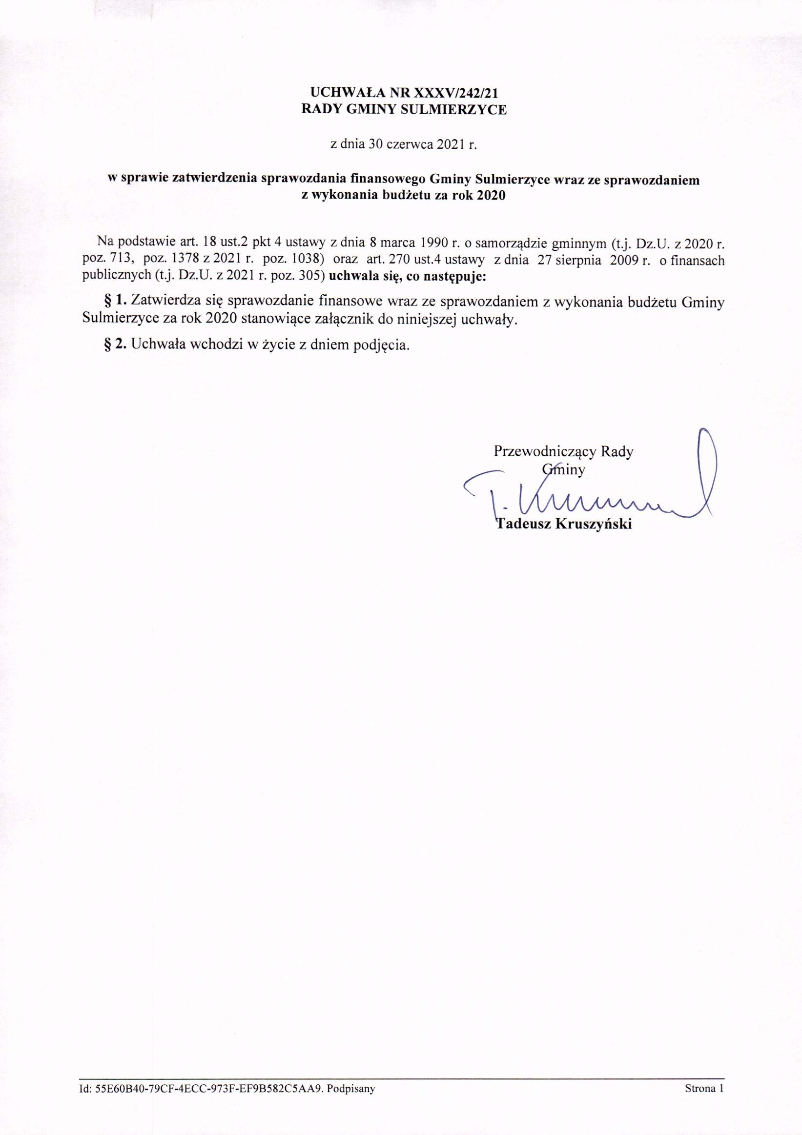 2021-06-30 przez Tadeusz Kruszyński - Przewodniczący Rady Gminy Sulmierzyce