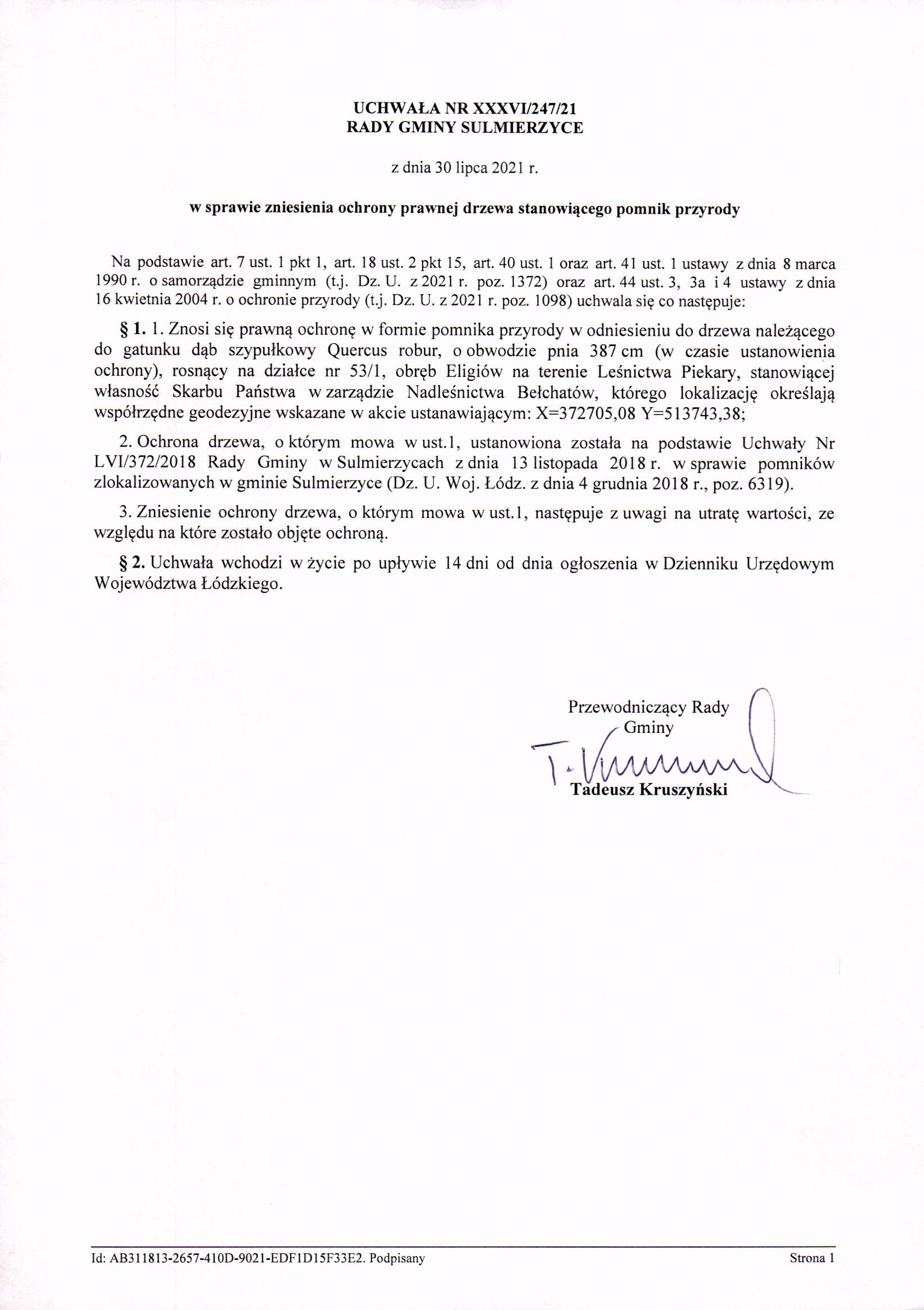 2021-07-30 przez Tadeusz Kruszyński - Przewodniczący Rady Gminy Sulmierzyce