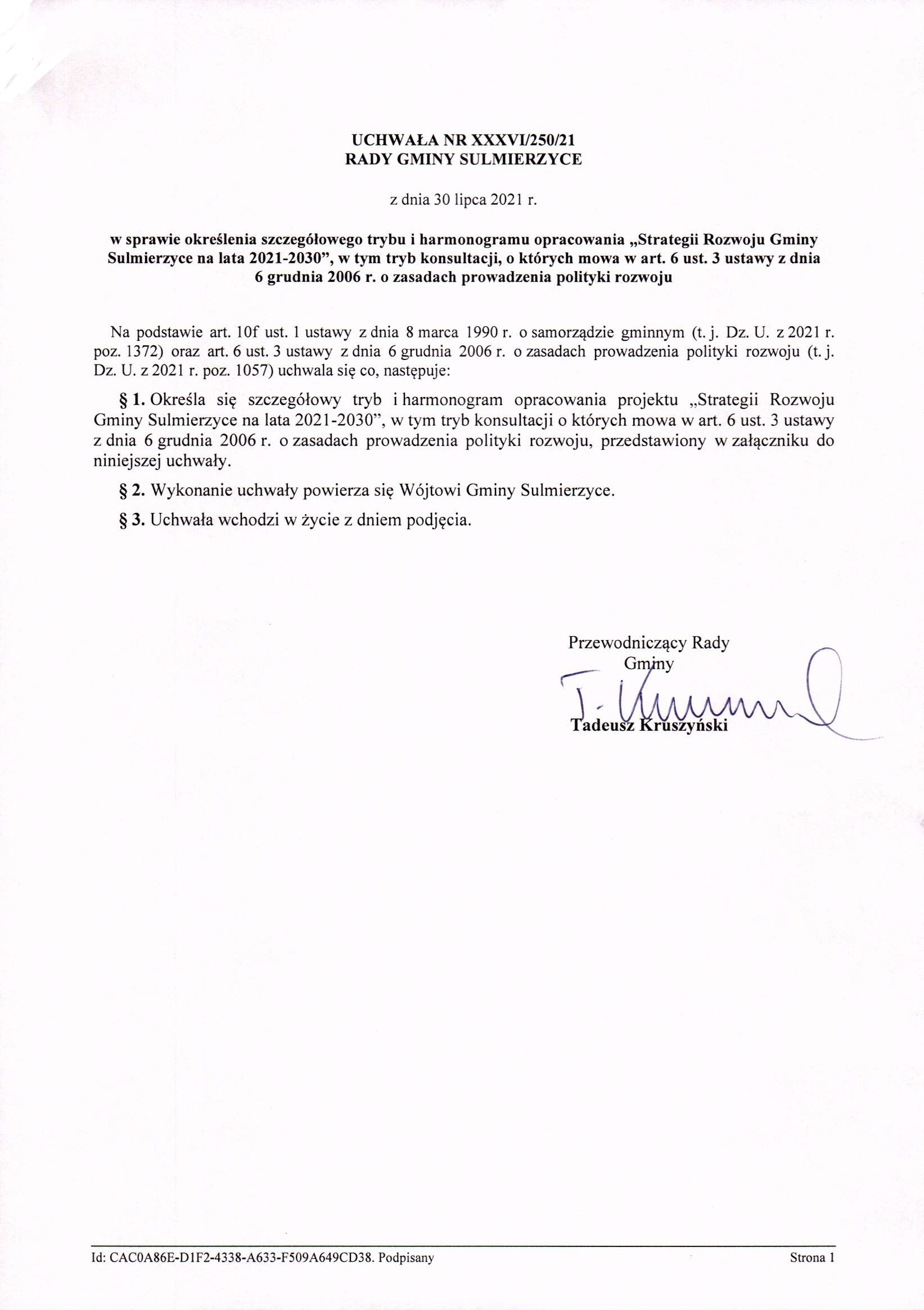 2021-07-30 przez Tadeusz Kruszyński - Przewodniczący Rady Gminy Sulmierzyce