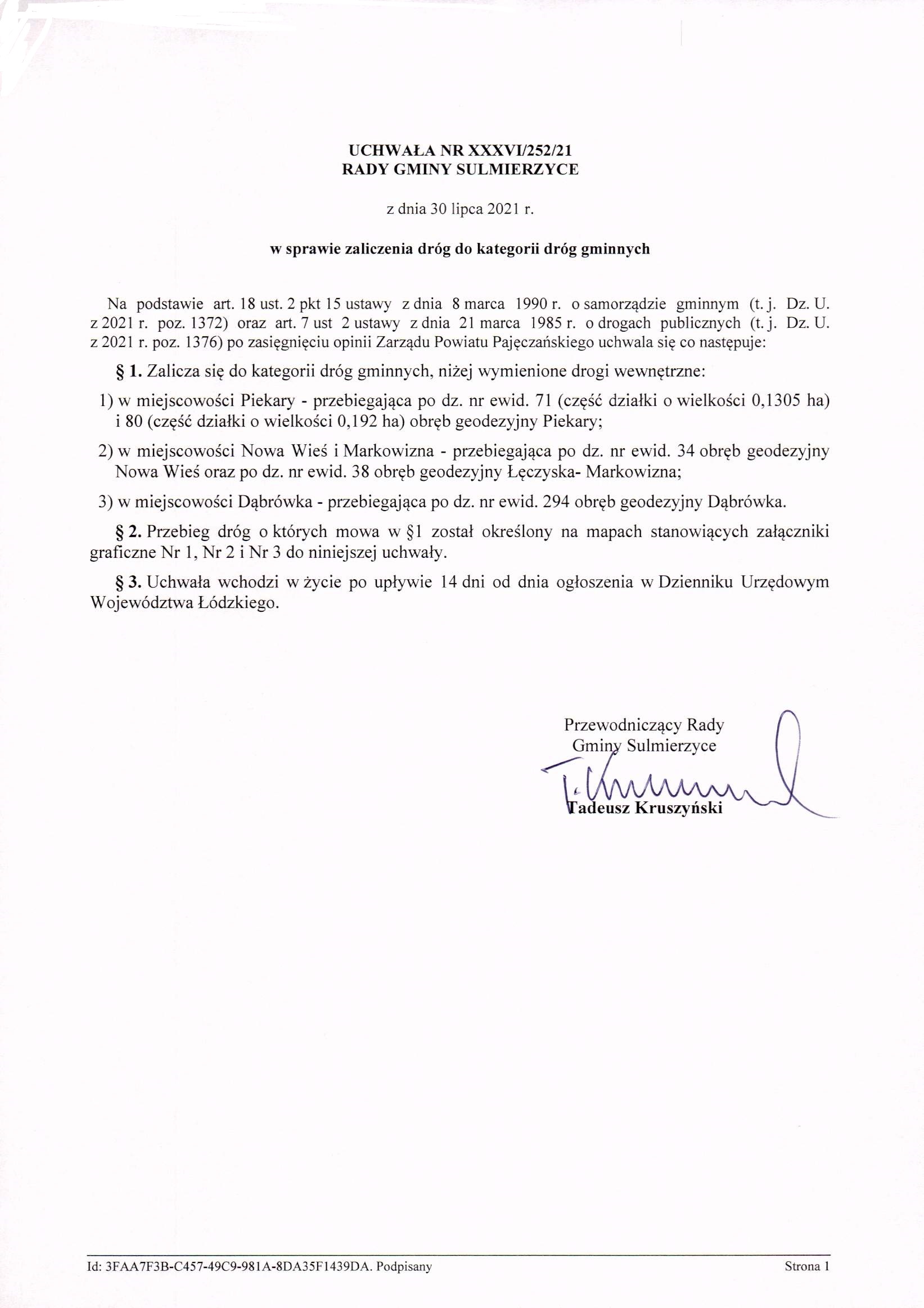 2021-07-30 przez Tadeusz Kruszyński - Przewodniczący Rady Gminy Sulmierzyce