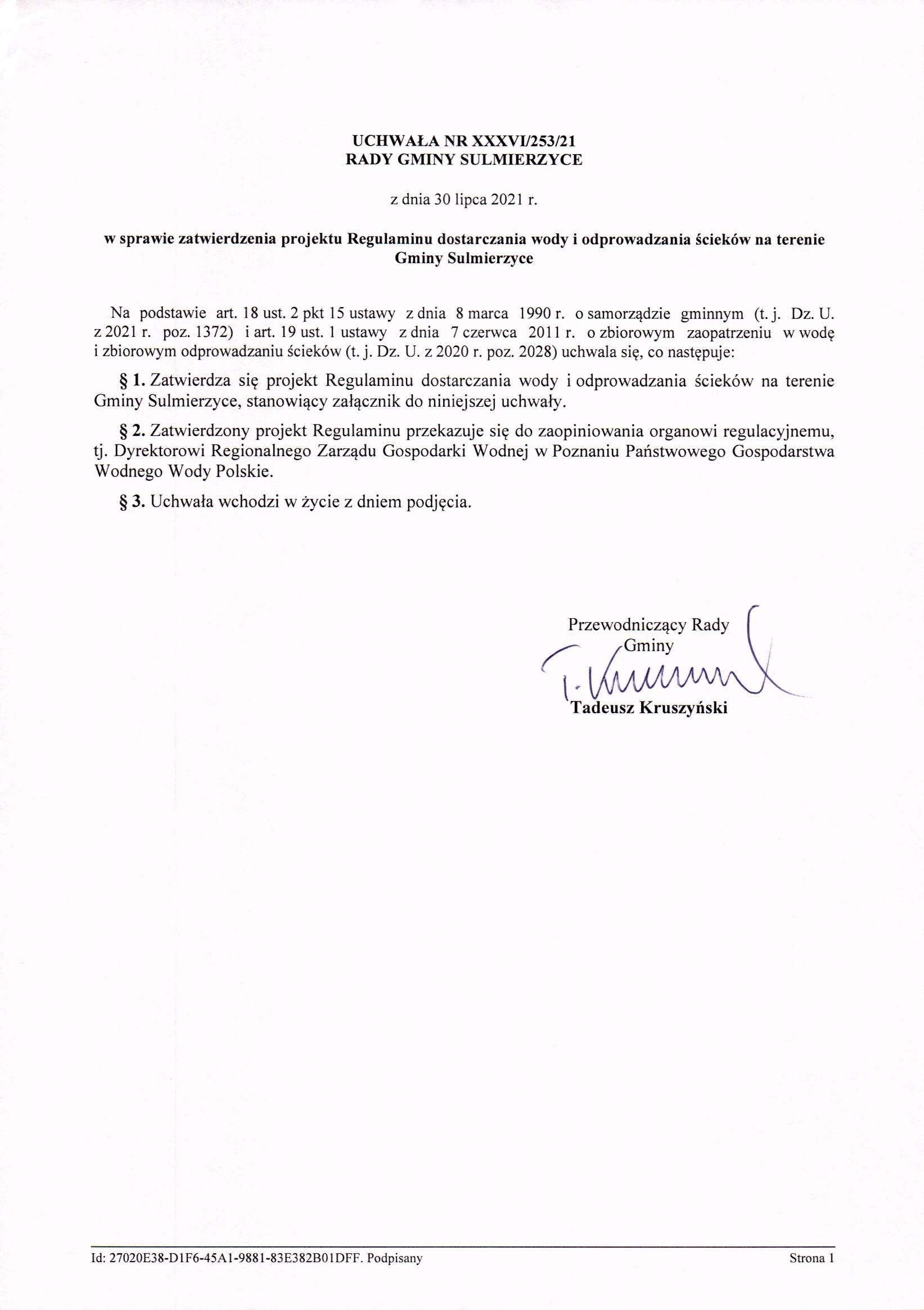 2021-07-30 przez Tadeusz Kruszyński - Przewodniczący Rady Gminy Sulmierzyce