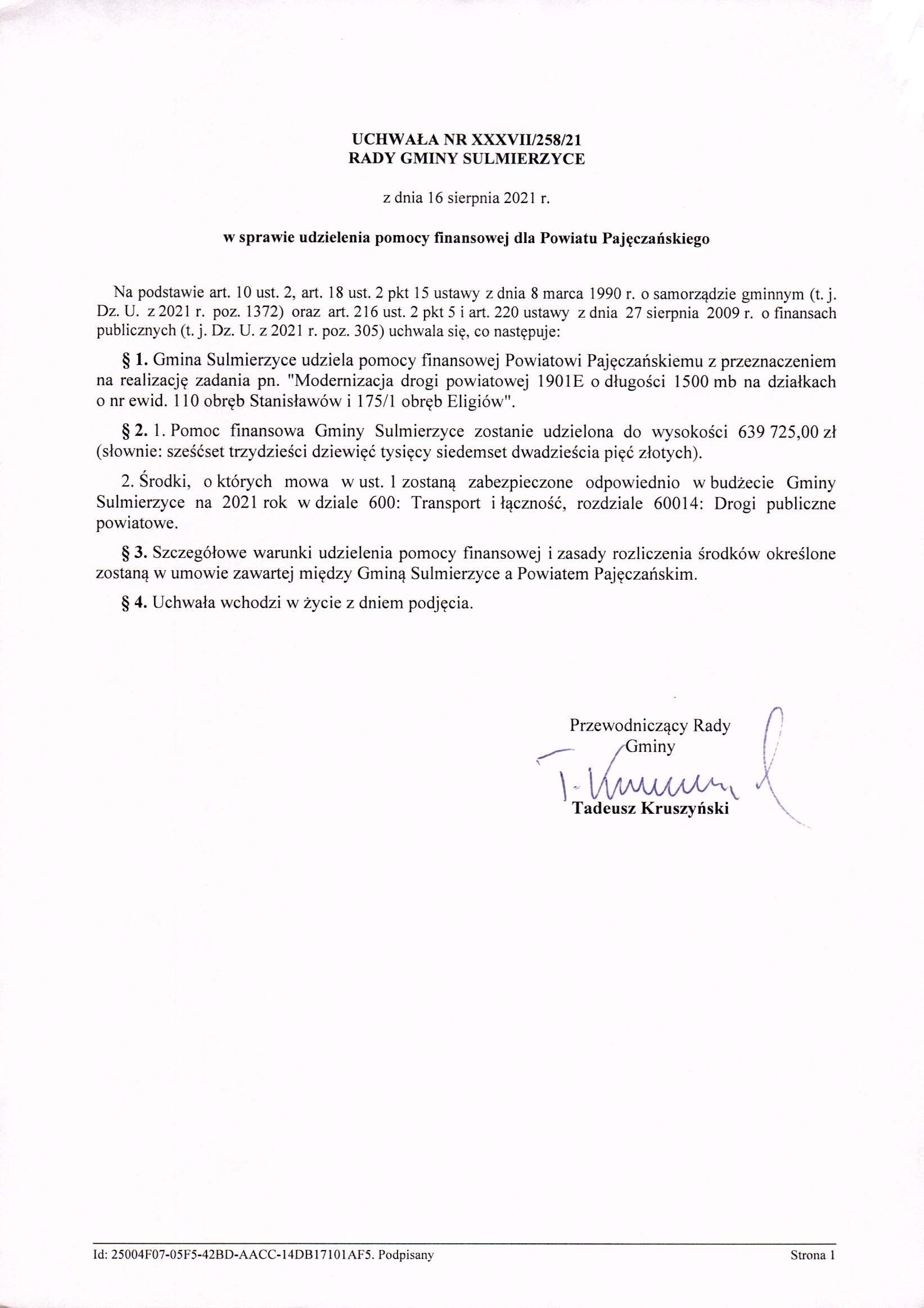 2021-08-16 przez Tadeusz Kruszyński - Przewodniczący Rady Gminy Sulmierzyce
