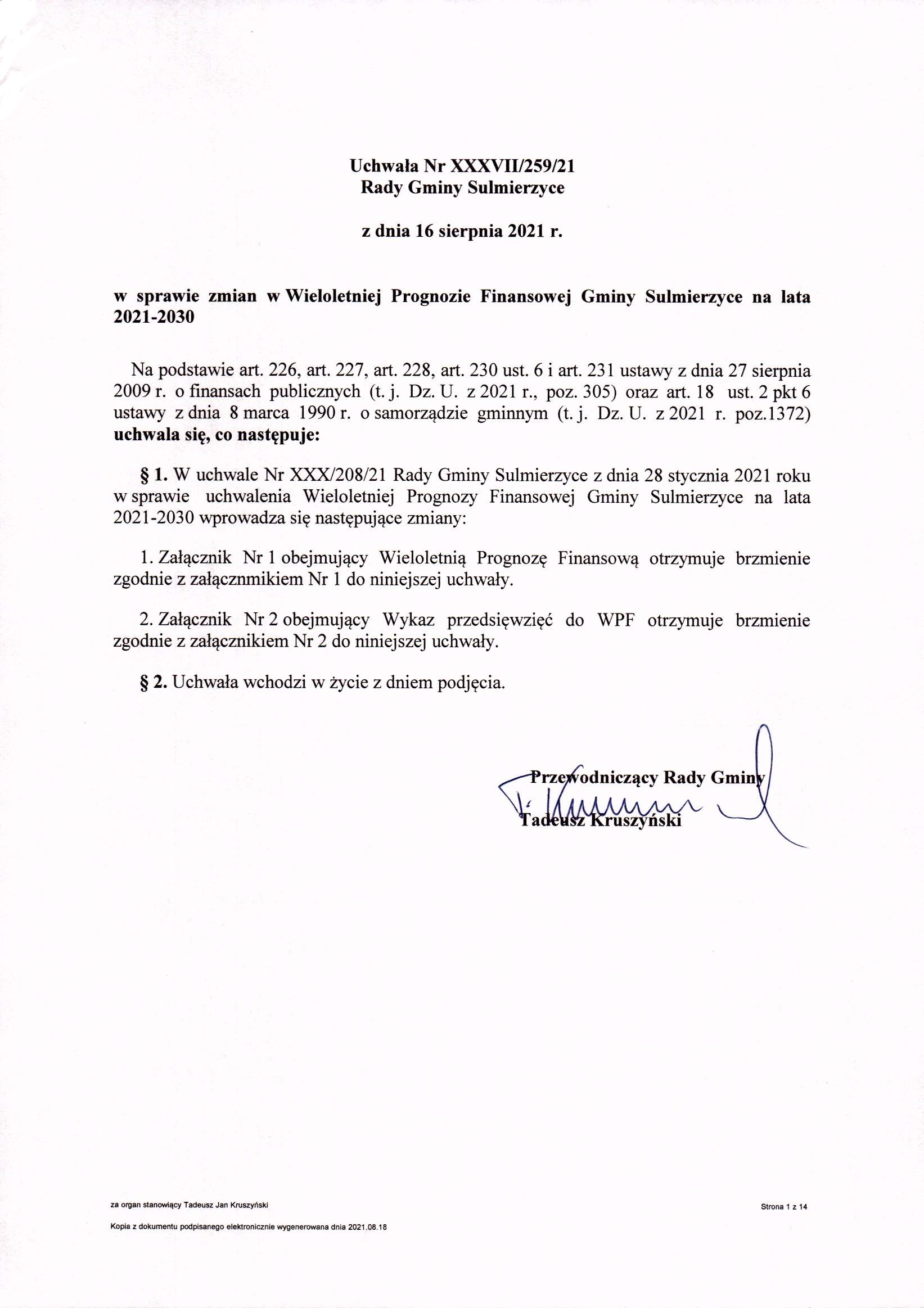 2021-08-16 przez Tadeusz Kruszyński - Przewodniczący Rady Gminy Sulmierzyce