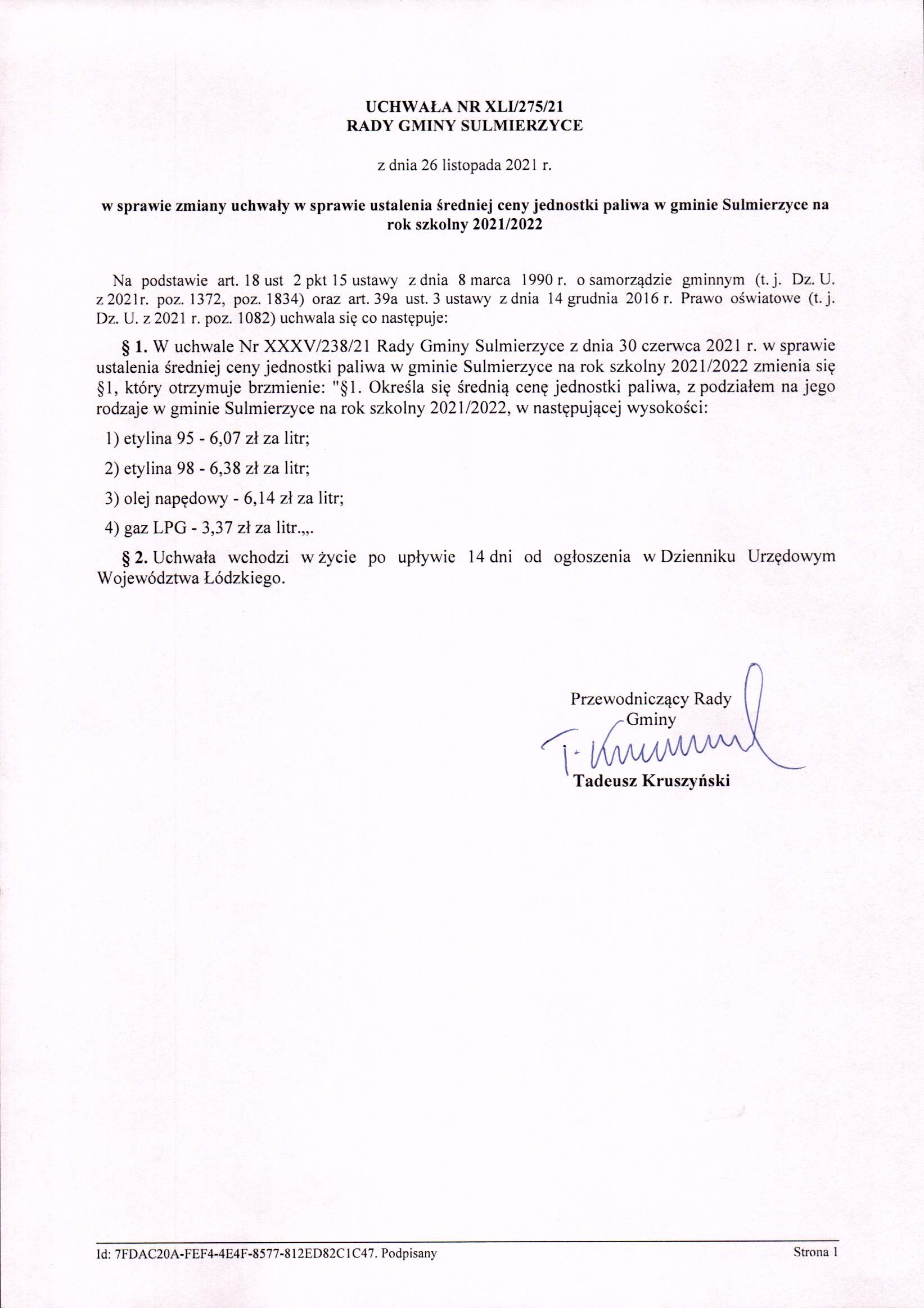 2021-11-26 przez Tadeusz Kruszyński - Przewodniczący Rady Gminy Sulmierzyce