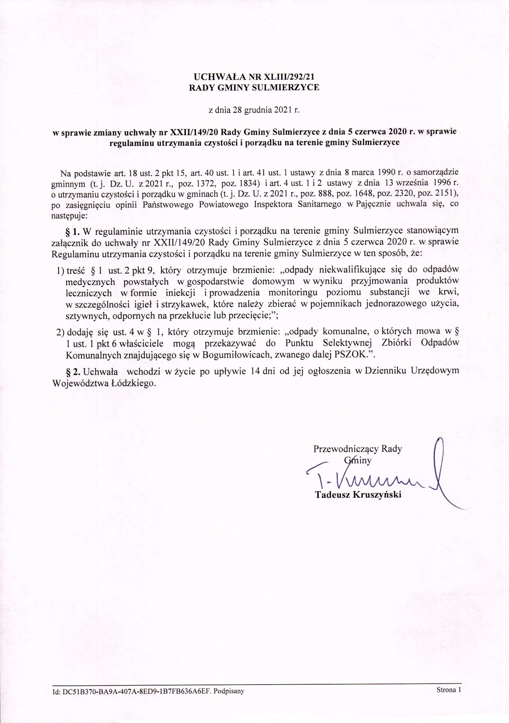 2021-12-28 przez Tadeusz Kruszyński - Przewodniczący Rady Gminy Sulmierzyce