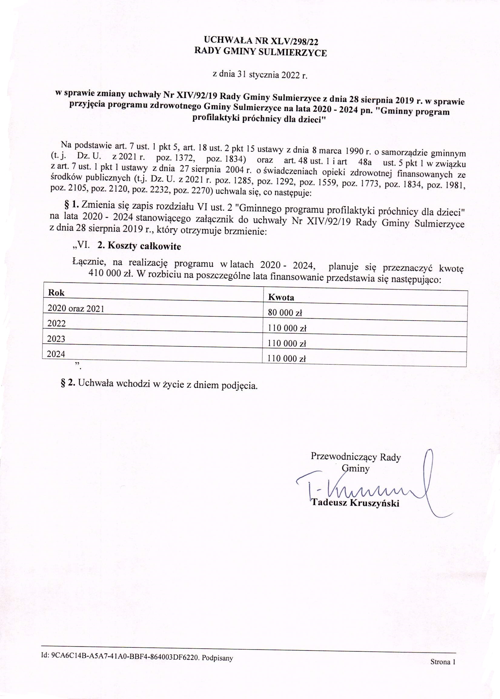 2022-01-31 przez Tadeusz Kruszyński - Przewodniczący Rady Gminy Sulmierzyce
