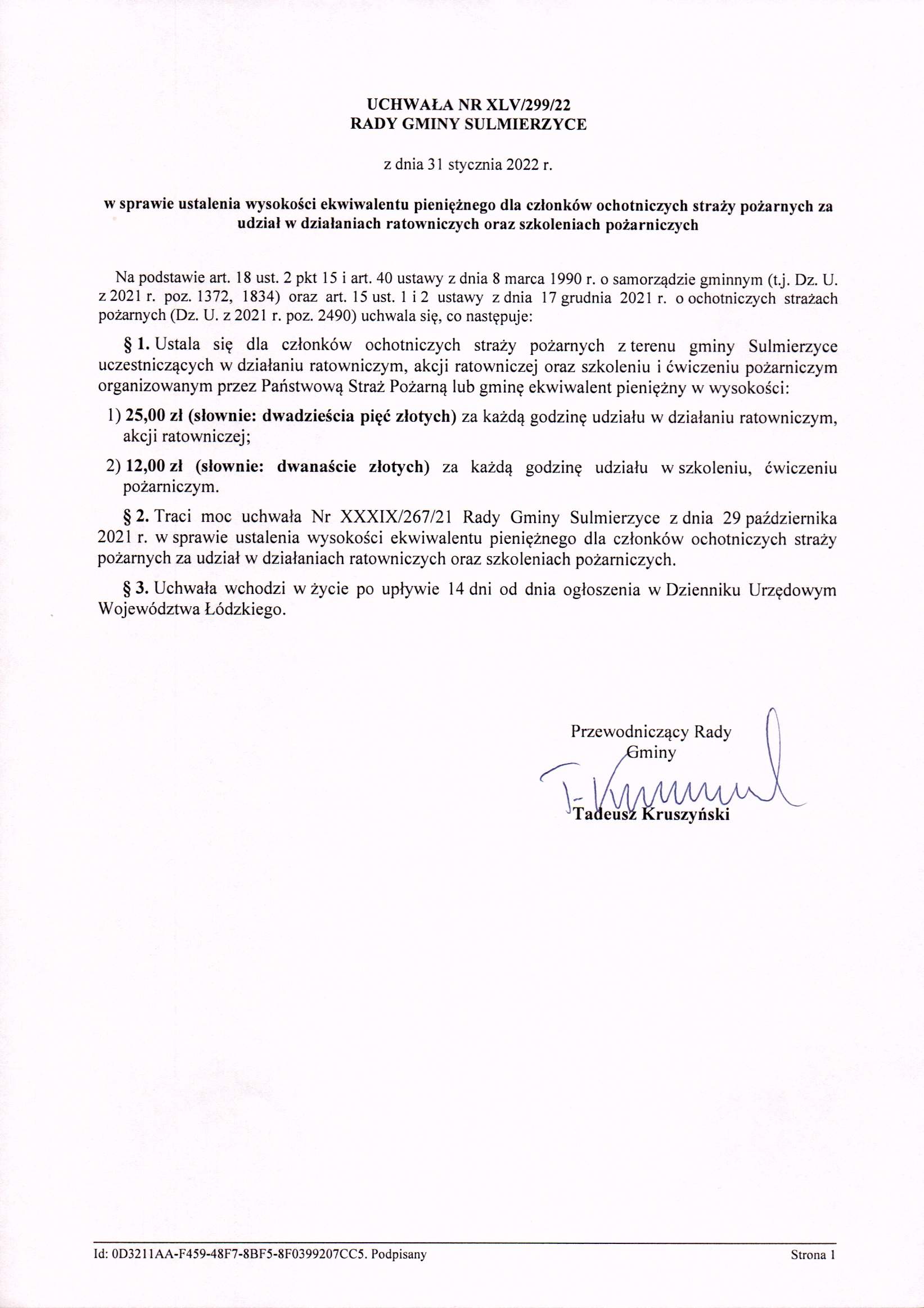 2022-01-31 przez Tadeusz Kruszyński - Przewodniczący Rady Gminy Sulmierzyce