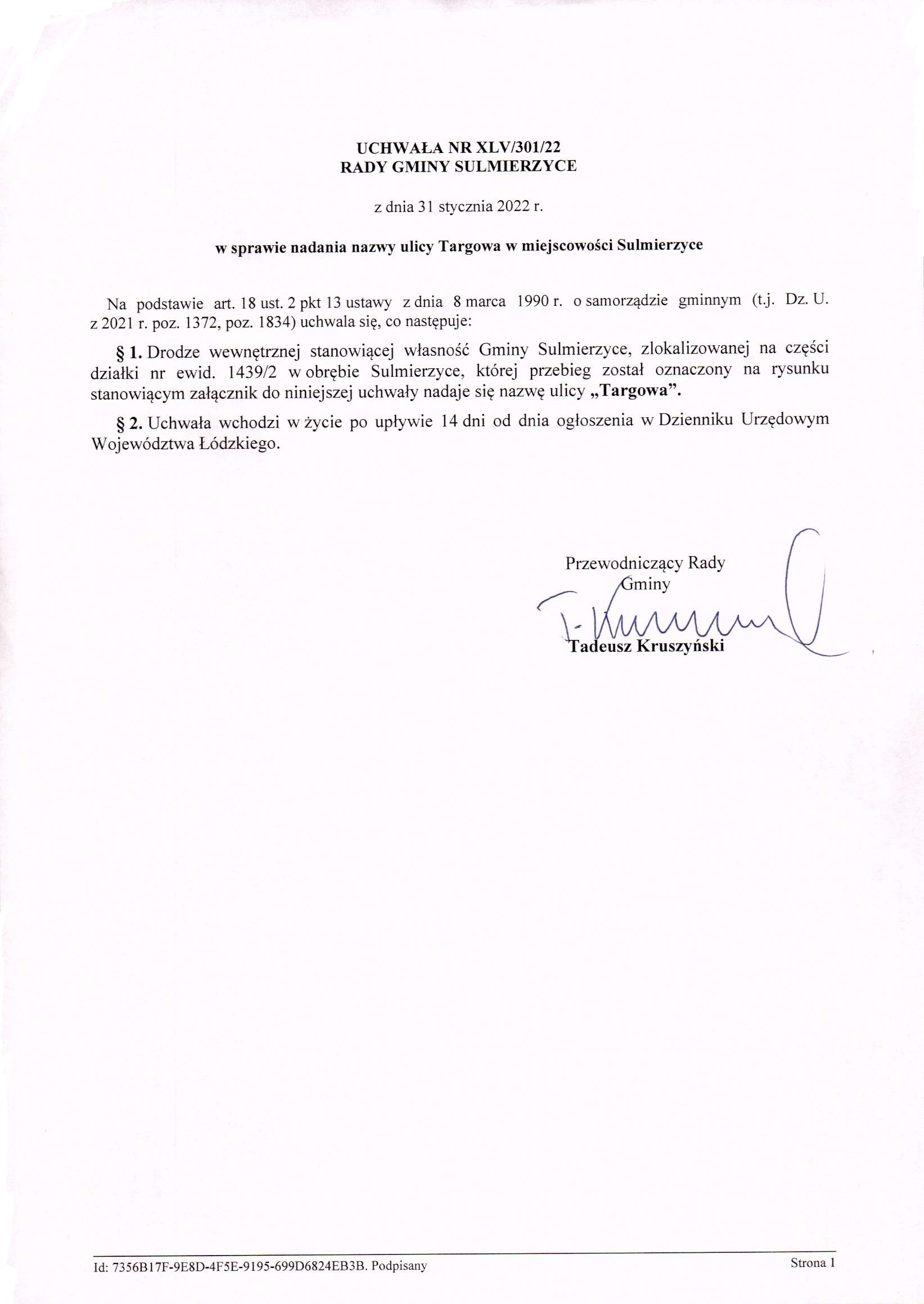 2022-01-31 przez Tadeusz Kruszyński - Przewodniczący Rady Gminy Sulmierzyce