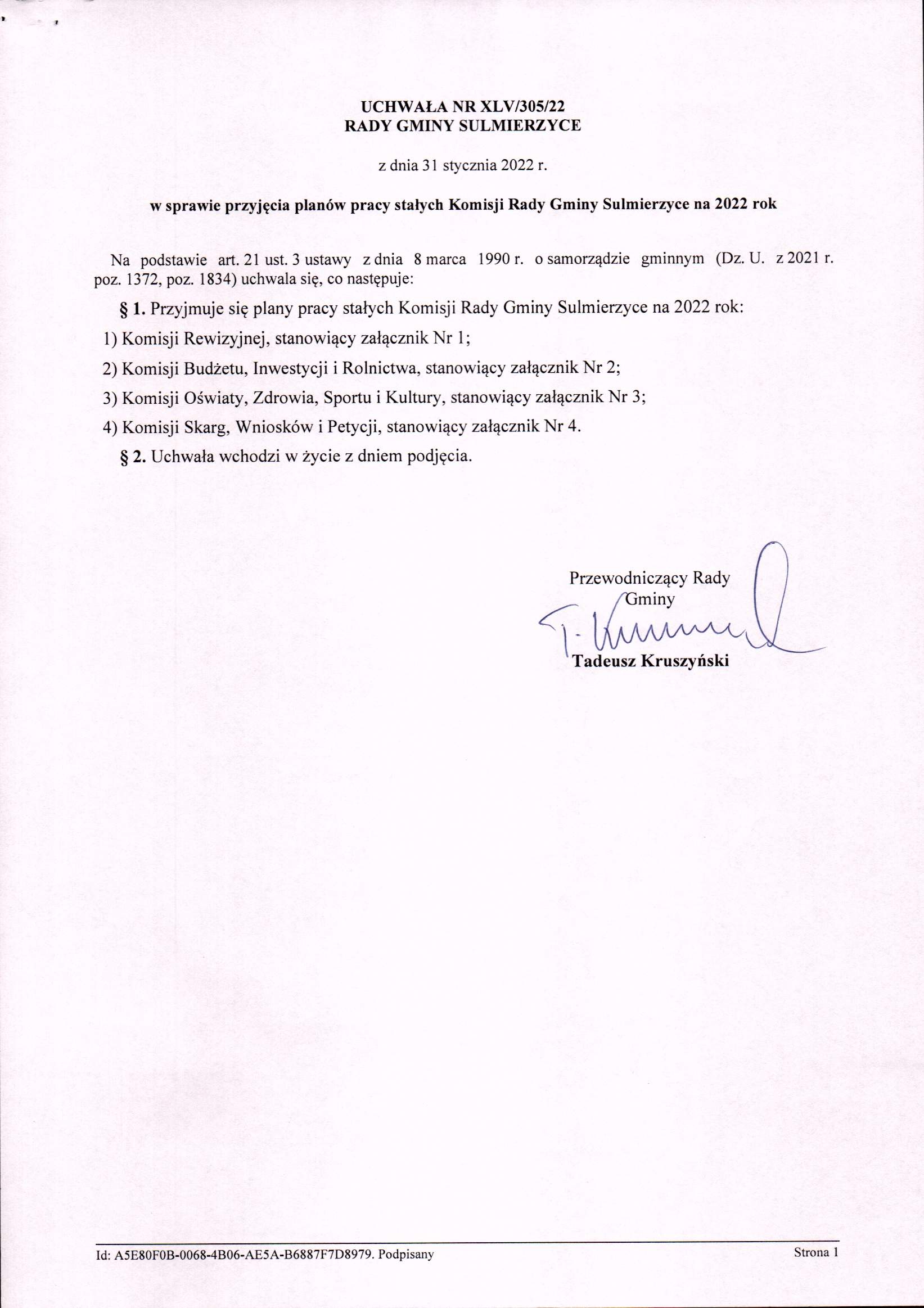 2022-01-31 przez Tadeusz Kruszyński - Przewodniczący Rady Gminy Sulmierzyce