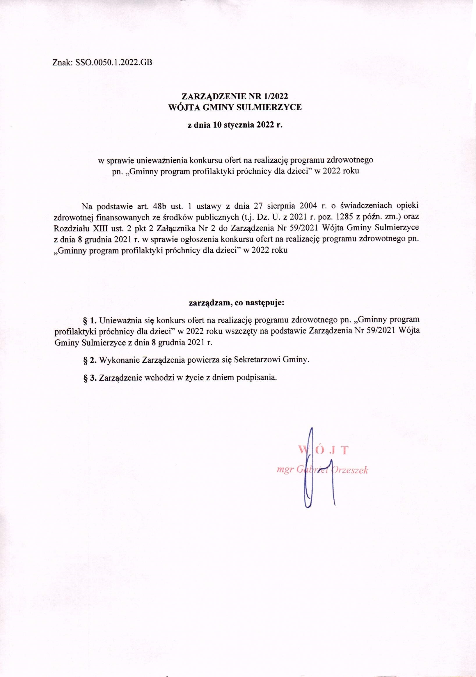 2022-01-10 przez Gabriela Brzeszczyńska, zatwierdził: Wójt Gminy Gabriel Orzeszek