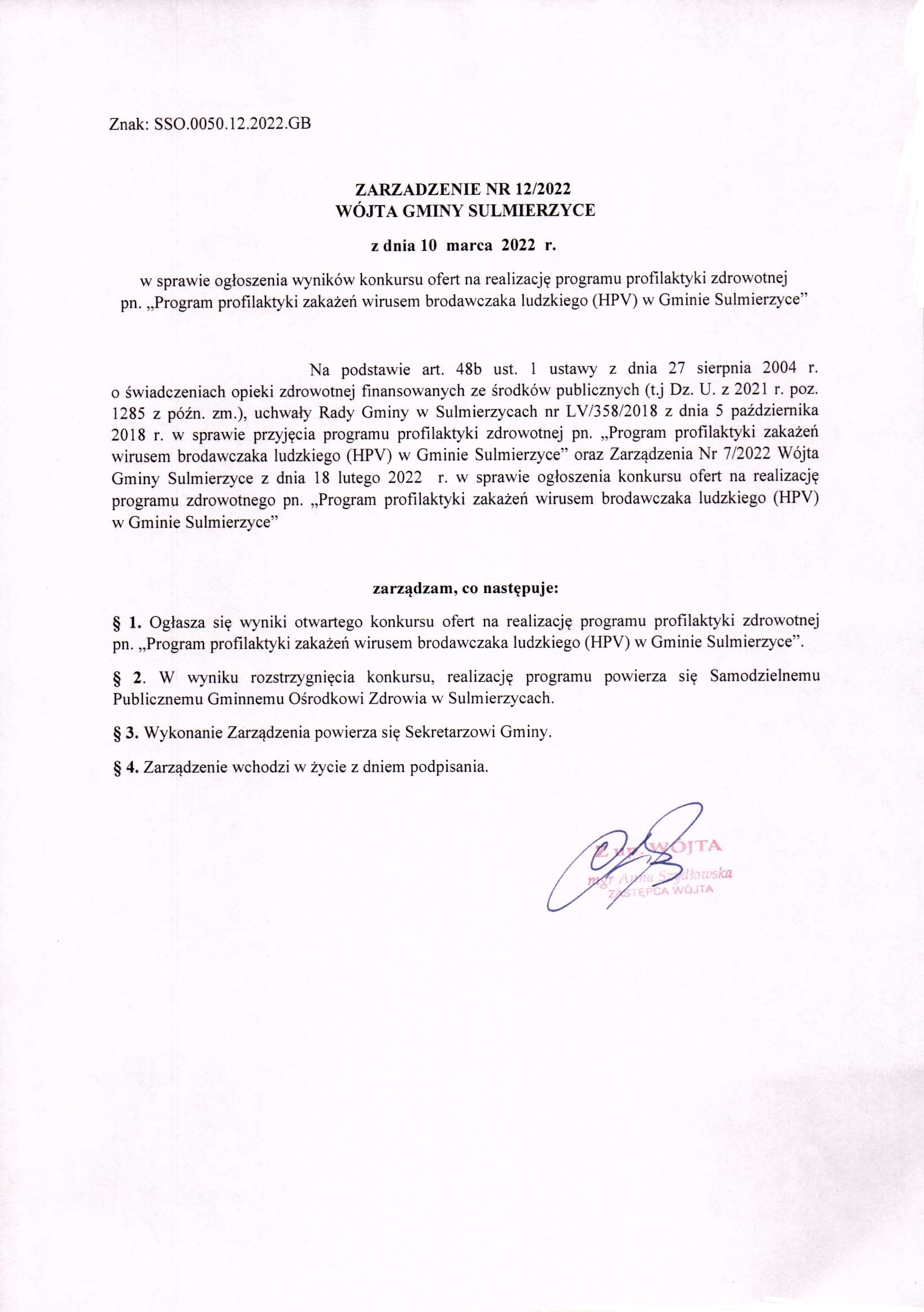 2022-03-10 przez Gabriela Brzeszczyńska, zatwierdził: Zastępca Wójta Gminy Anna Szydłowska
