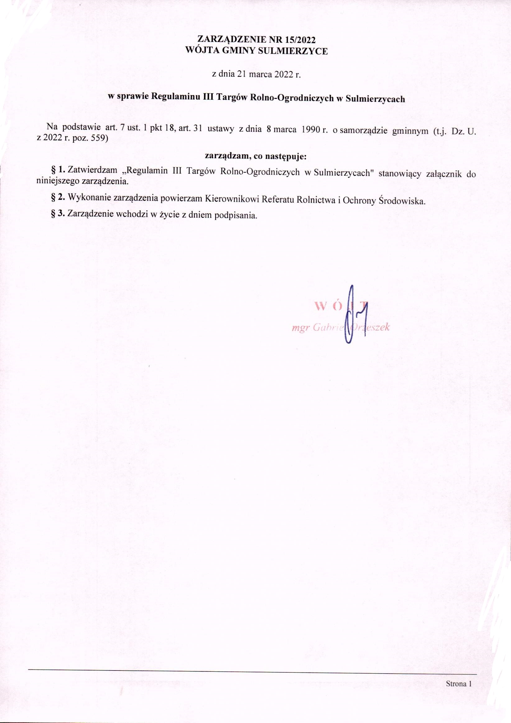 2022-03-21 przez Małgorzata Garstka, zatwierdził: Wójt Gminy Gabriel Orzeszek