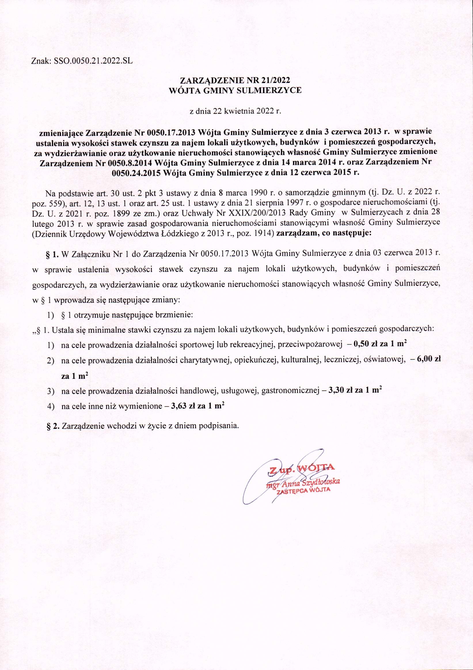 2022-04-22 przez Sylwia Lorencka, zatwierdził: Zastępca Wójta Gminy Anna Szydłowska