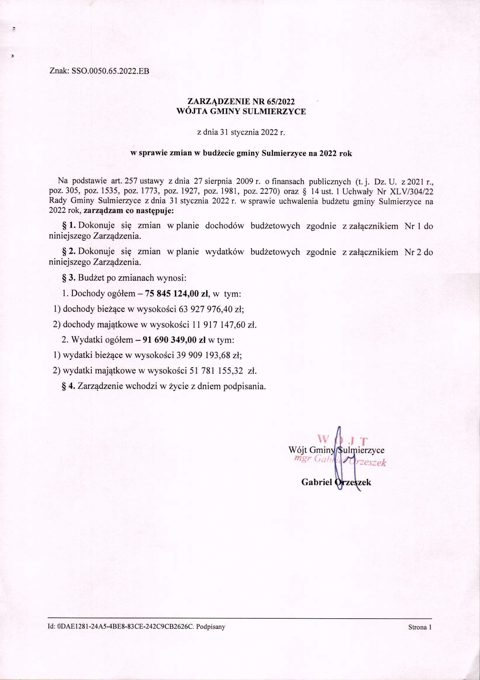 2022-01-31 przez Skarbnik Gminy Ewa Bęczkowska, zatwierdził: Wójt Gminy Gabriel Orzeszek