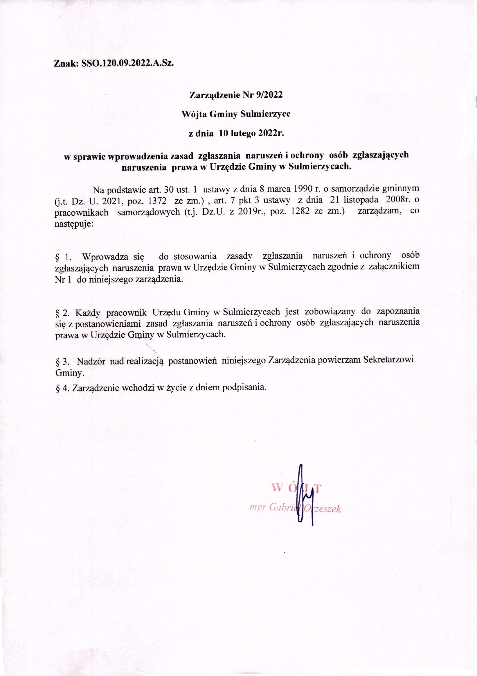 2022-02-10 przez Anna Szydłowska Sekretarz Gminy, zatwierdził: Wójt Gminy Gabriel Orzeszek
