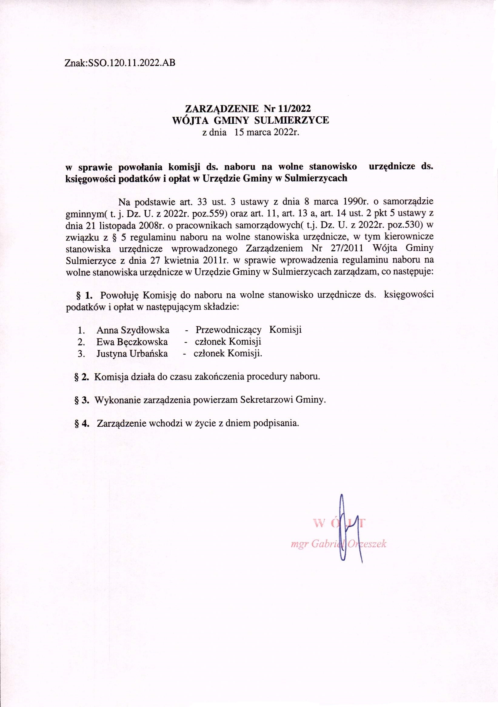 2022-03-15 przez Anna Bujacz, zatwierdził: Wójt Gminy Gabriel Orzeszek