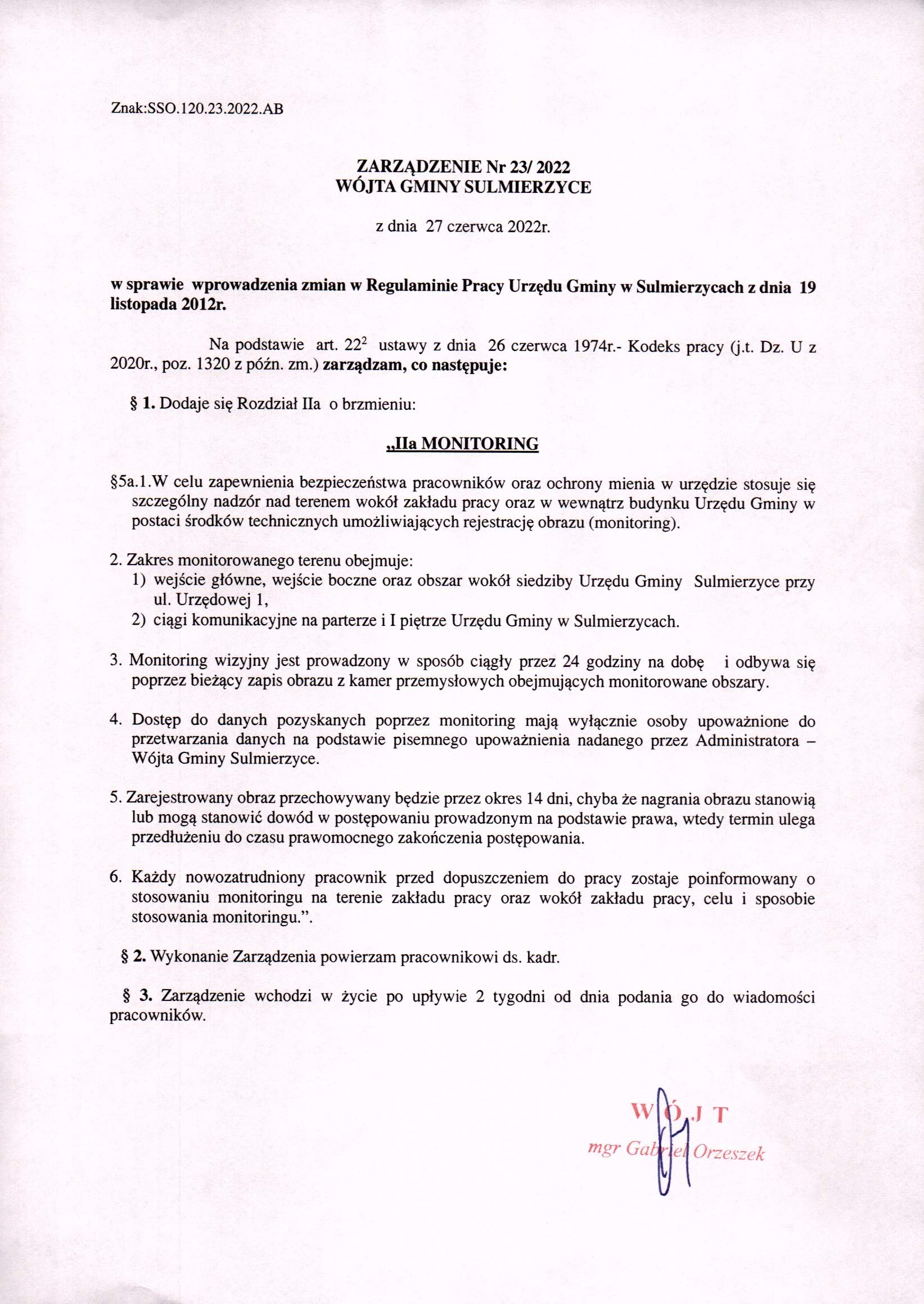 2022-06-27 przez Anna Bujacz, zatwierdził: Wójt Gminy Gabriel Orzeszek